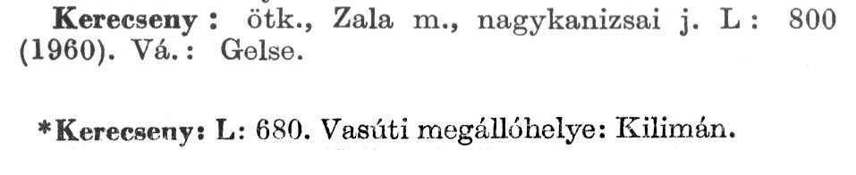 Nyilvános 2554 | 6445 | A szócikkek felismertetett szövege: | (A csillag után az 1972-es kiadású kiegészítő kötetből származó szöveg következik) Kerecseny: ötk., Zala m., nagykanizsai j. L : 800 (1960). Vá.: Gelse. *Kerecseny: L: 680. Vasúti megállóhelye: Kilimán. A szócikkek a következő lexikonból származnak: Cím: Új magyar lexikon Közreműködő: Berei Andor (1900-1979) (szerk.) Szerz. közl.: [szerk. Berei Andor et al.] Kiadás jelzés: 2. lny. Kiadás: Budapest : Akad. K., 1961-1962 Kötetei: 1., A - C 2., D - F 3., G - J 4., K - Me 5., Mf - R 6., S - Z 7. köt., A-Z Kiegészítő kötet (1972) Kiegészítő kötet, 1962÷1980 (1981) ETO jelzet: 03=945.11 Szakjelzet: 030 Cutter: U 28 Nyelv: magyar Megjegyzés: Bibliogr. a címszavak egy részének végén |