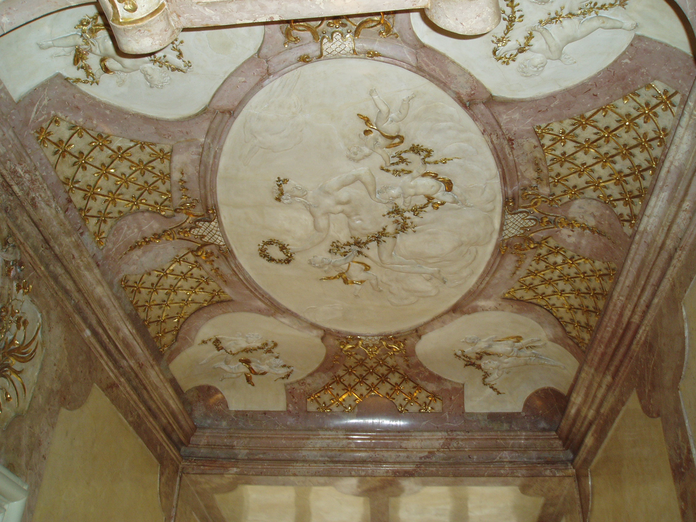 Nyilvános 1629 | 3721 | Domgasse 5. Szobabelső Mozart lakásában | Kutatók szerint az egykori Mozart-lakás e legszebben dekorált kis helyisége lehetett a zeneszerző hálószobája. Bár bútorai, használati tárgyai közül semmi nem maradt fenn, de ő is ugyanezt a díszes mennyezetet látta. A lakásban, illetve a fölötte lévő két szinten berendezett, s a XXI. század minden technikai vívmányával felszerelt emlékmúzeumban a zeneszerző több eredeti kézirata is látható. |