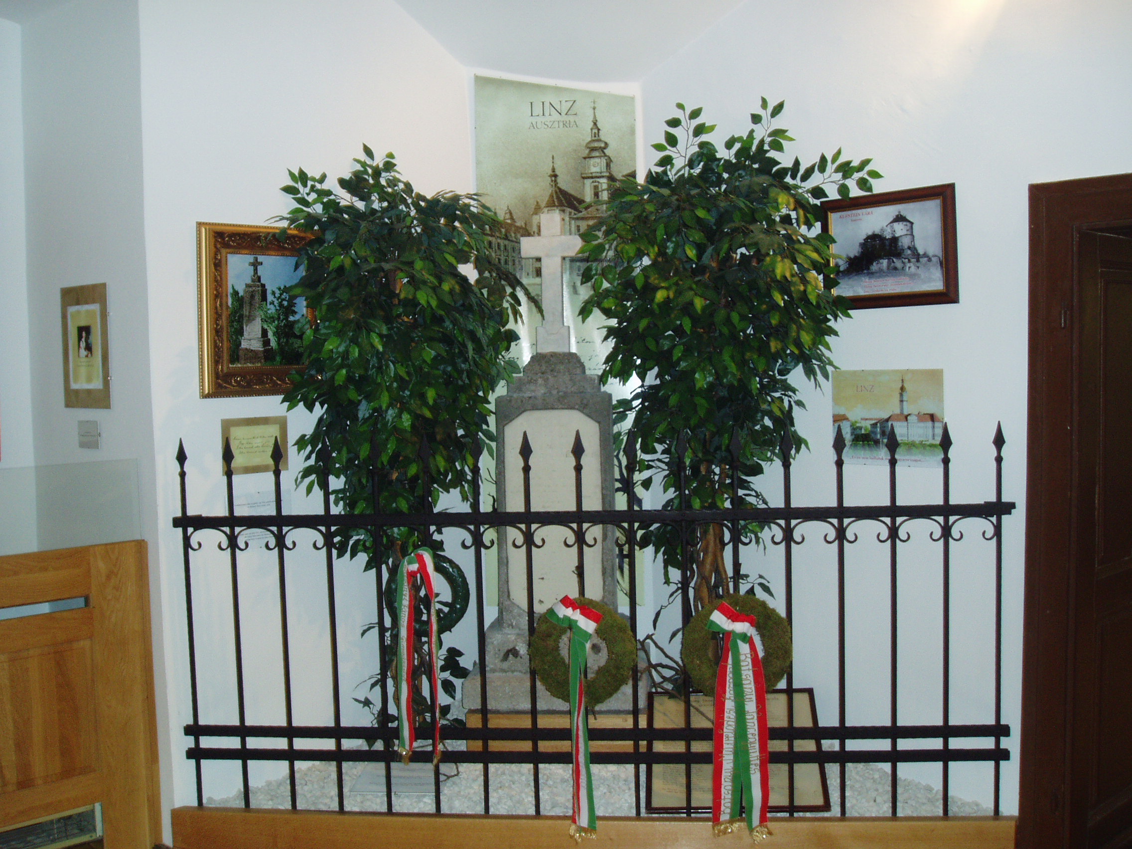 Nyilvános 1134 | 1734 | Tapolca: Templom domb 8. Múzeum | A múzeum épülete, az ún. Kántorház - a város védett építészeti emléke - Tapolca történelmi városközpontjában, a Malom-tó fölötti Templom dombon található. Ide járt elemi iskolába az 1770-es évek elején város nagy szülötte, Batsányi János költő. Részlet a Batsányi Emlékkiállításról: Batsányi János és Baumberg Gabiella eredeti síremléke. Baumberg Gabriella, aki linzi száműzetésébe is követte férjét, 1935-ben hunyt el, Batsányi tíz évvel élte túl feleségét. Linzi síremléküket még maga Batsányi állíttatta felesége halálakor, s ő is e sírjel alatt pihent 1934-ig. Ebben az évben országos mozgalom kezdeményezésére exhumálták őket. Földi maradványaikat Tapolcára szállították, s helyezték örök nyugalomra (lásd: Tapolca, Régi köztemető). Ekkor az eredeti linzi sírkőt állították sírjuk fölé. E sírkő azonban az időjárás viszontagságainak kitéve 1990-re nagyon leromlott. Ezért a régi mintát követve új síremléket készítettek, az eredeti sírkövet pedig a múzeumba szállították, ahol most a Batsányi Emlékkiállításon látható. A felvétel 2007 februárjában készült. Felh. irod.: Látnivalók Veszprém megyében. Miskolc, Well-PRess, 2000 Hangodi László: Múltbanéző - kiállításvezető a Tapolcai Városi Múzeum tárlataihoz. Tapolca, 2006 |