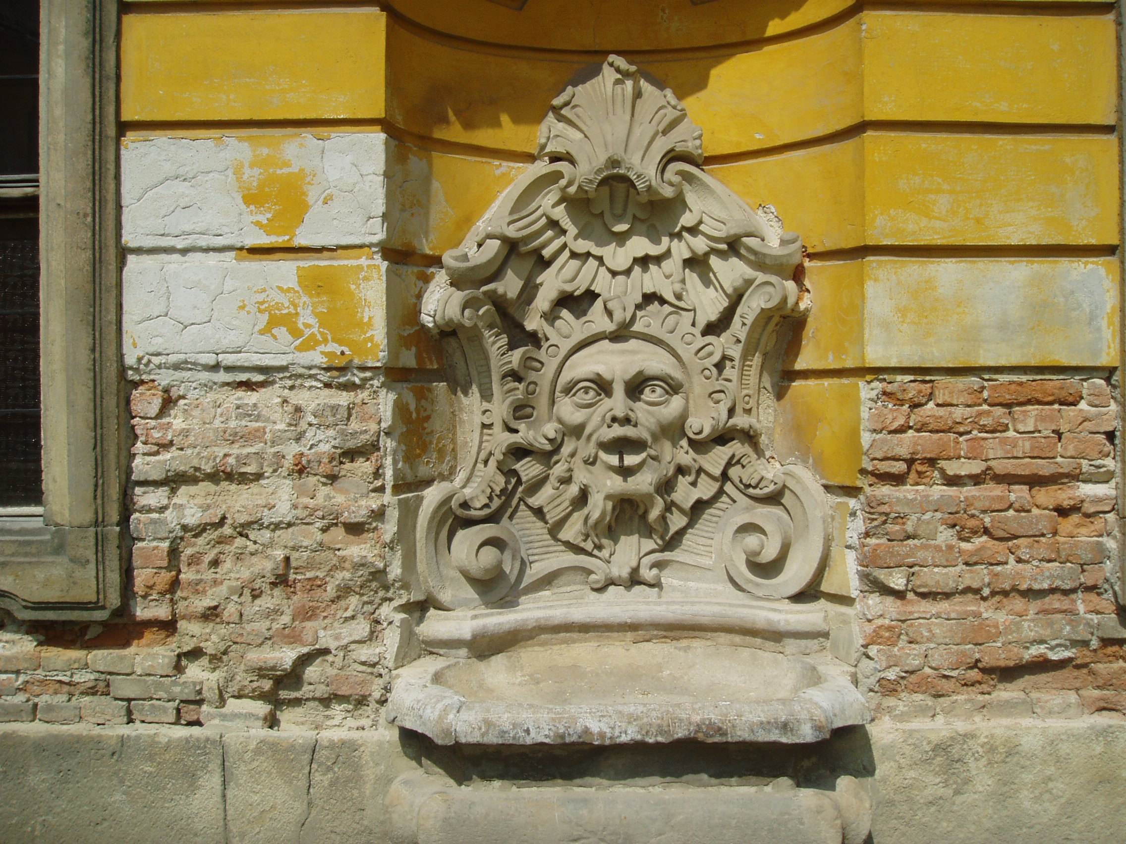 Nyilvános 1156 | 1915 | Pápa, Fő tér 1-3. Esterházy-kastély | A barokk kastély a korábban itt állott végvár helyére épült, részben annak alapfalai, kövei felhasználásával. A régi várat az 1740-es évektől Esterházy Ferenc (1683–1754) tárnokmester kezdte átalakítani Franz Anton Pilgram tervei alapján. A barokk várkastély kialakítása 1784-re fejeződött be Esterházy Ferenc fia, Eszterházy Károly egri püspök idejében Fellner Jakab, majd Grossmann József vezetésével. Az U alakú, egyemeletes épület a versailles-i palota nyomán elterjedt francia kastélytípus képviselője. A képen a főbejárat két oldalán állóvízköpős, gazdagon faragott díszkút egyike látható. A fénykép 2007 áprilisában készült. Felh. irod.: Németh Adél - Szabó Lajos: Pápa. Bp. Panoráma, 1989 Pápa. Szerk. Sz. Farkas Aranka. Bp., Magyar Képek, 2000 |