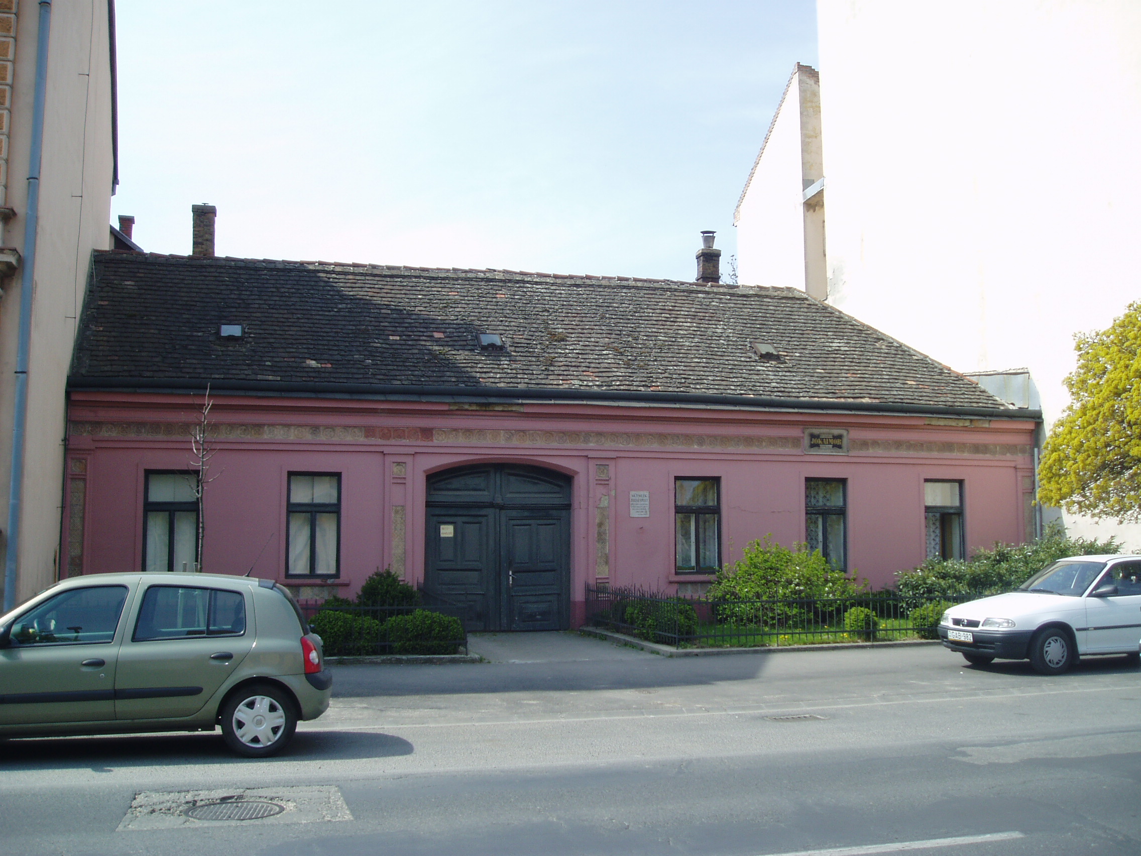 Nyilvános 1117 | 2078 | Pápa, Jókai utca 13. | Klasszicista stílusban, 1820 körül épült egyemeletes lakóház. Homlokzatán emléktábla jelzi, hogy pápai diák korában, 1841/42-ben itt lakott Jókai Mór. Jókai - akkor még Jókay - Mórt sógora, Vály Ferenc hozta Pápára 1841. aug. 21-én különbözeti vizsgát tenni, ami után a fiú a Kollégium (lásd: Pápa, Petőfi u. 13.) diákja lett. Nov. 1-jén költözött be bebbe a házba, Klára Mihály otthonába, kosztosdiákként. (Még idős kori levelében is emlegette a "derék" Klára Mariska főztjét.) Együtt lakott Kerkapoly Károly későbbi filozófiaprofesszorrel és pénzügyminiszterrel és egy Pap Dénes nevű iskolatársával. Az itt töltött időben Jókai jeles előmenetelű diák volt. Tanulmányai mellett portréfestéssel is foglalkozott. Visszavonult, szolíd életet élt, amivel táraitól kiérdemelte a "Jámbor" becenevet. Ebben gyerekkori betegségének, tüdő-problémáinak is része volt. Lakótársain kívül elsősorban Orlai Petrich Somával barátkozott. Petőfivel 1842-ben ismerkedett meg. Eltérő egyéniségük ellenére hamar jóban lettek, sok időt töltött Petőfiék szállásán (lásd: Pápa, Petőfi u. 11.), de igazi barátság csak a későbbi kecskeméti években alakult ki közöttük. Bár még elsősorban festőművésznek készült, de novellákat is írt; az egyikkel második díjat nyert 1842-ben (lásd: Pápa, Fő u. 17.). Itt töltött időszaka, a diákélet szokásai, jeles professzorai nagy hatást gyakoroltak életművére. Különösen sok pápai motívum lelhető fel az És mégis mozog a föld és az Egetvívó asszonyszív című regényeiben. A házat még Jókai életében, 1880-ban jelölték meg emléktáblával (lásd: Pápa, Jókai u. 13. 3.kép). A fénykép 2007 áprilisában készült. Felh. irod.: Németh Adél - Szabó Lajos: Pápa. Bp. Panoráma, 1989 Petőfi emlékhelyek a Kérpát-medencében. Kiskőrös, 1996, Petőfi Sándor Társaság "A kényes úrfi s a rongyos baka". Tanulmányok két halhatatlan pápai diákról. Pápa, 2001, Pápai Református Gyűjtemények |
