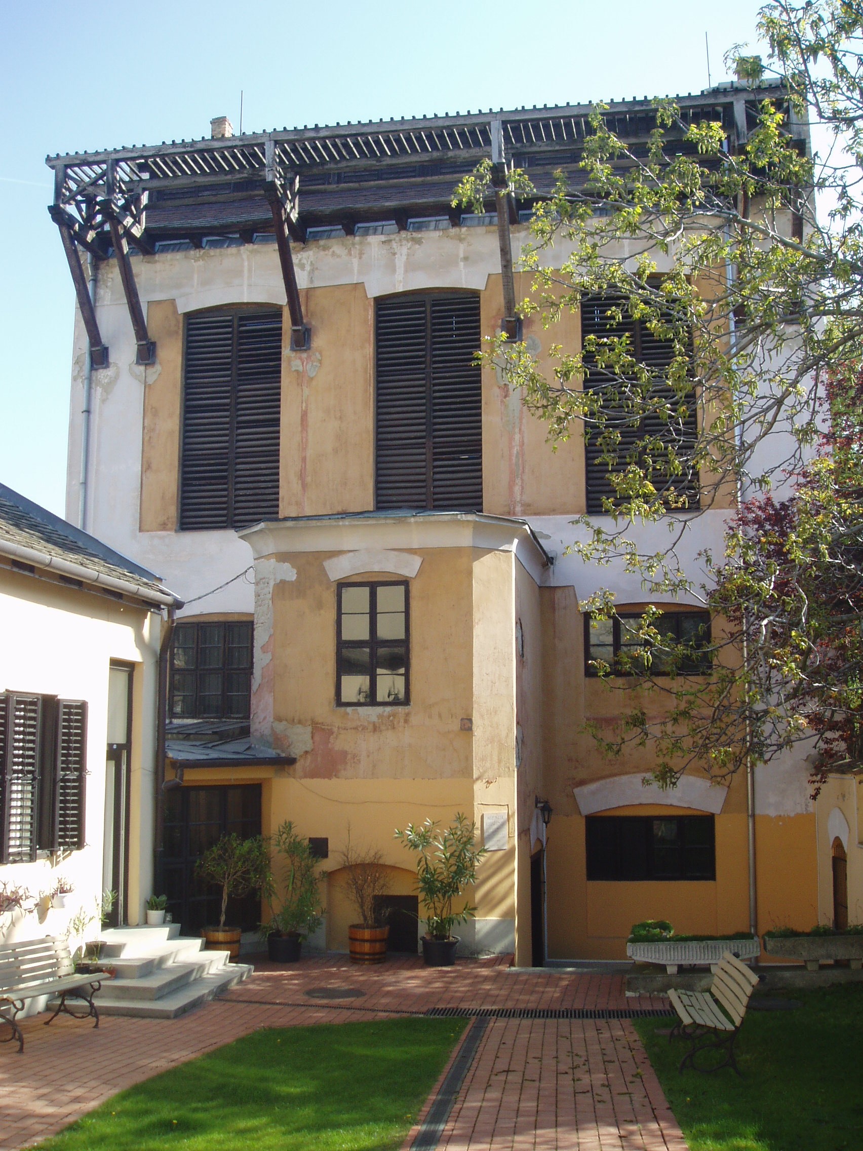 Nyilvános 1083 | 1610 | Pápa, Március 15. tér 12. Kékfestő Múzeum | Az 1962-ben megnyílt pápai Kékfestő Múzeum az egykori Kluge cég üzemének épületében és berendezéséből alakult. A céget 1783-ban alapította Sárváron a Szászországból bevándorolt Carl Friedrich Kluge, aki azonban 1786-ban már Pápán ezen a helyen, a mai Március 15. tér 12. számú épületegyüttes elődjében dolgozott. Fia, Kluge Károly, majd unokája, Kluge Ferenc is az ő mesterségét folytatta. Leszármazottai abban is követték az alapító Carl Friedrichet, hogy hosszas külföldi tanulmányutakat tettek. A cseh, porosz, thüringiai, bajor, svájci és osztrák műhelyekben tapasztaltakat itthon is alkalmazták, s ezzel fokozatosan kiemelkedtek a többi pápai kékfestő közül. A múzeum utca felőli épülete még a XVIII. századból származik. A képen látható udvari, három emeletes üzemépületet az 1860-as években emelték. Földszintjén ma is látható a 15 medencét befogadó küpaszoba, az ún. fekete konyhában a kifőzést és a keményítést szolgáló katlanok sora. Az emeleten a tarkázás, a kézi nyomás helyiségei találhatók, fölöttük pedig a hatalmas zsalugáteres, fedett padlástér és az innen kiugró nyitott erkélyszárító. A virágzó cég munkáját visszavetette az első világháború anyaghiánya és a falusiak népviseletből való fokozatos kivetkőzése. Az üzem végérvényesen 1956-ban zárta be kapuját. Egy és háromnegyed évszázados fennállása folyamán a család hét generációja váltotta egymást. A múzeumban a családi nagyüzem írott és tárgyi emlékei, eredeti berendezési tárgyai láthatók. Emmellett az intézmény folyamatosan kapcsolatot tart a még működő kékfestőmesterekkel, iparművészekkel, akik termékeikkel, alkotásaikkal rendszeresen gyarapítják a gyűjteményt. Ezekből az adományokból és vásárlásokból jött létre a kortárs hazai kékfestő-mesterek és műhelyek termékeiből rendezett állandó kiállítás. A fénykép 2007 áprilisában készült. Felh. irod.: Domonkos Ottó - Tóth Sándorné: Pápa, Kékfestő Múzeum. Bp. 1995, Cartographia. /Tájak, Korok, Múzeumok kiskönyvtára 205./ |