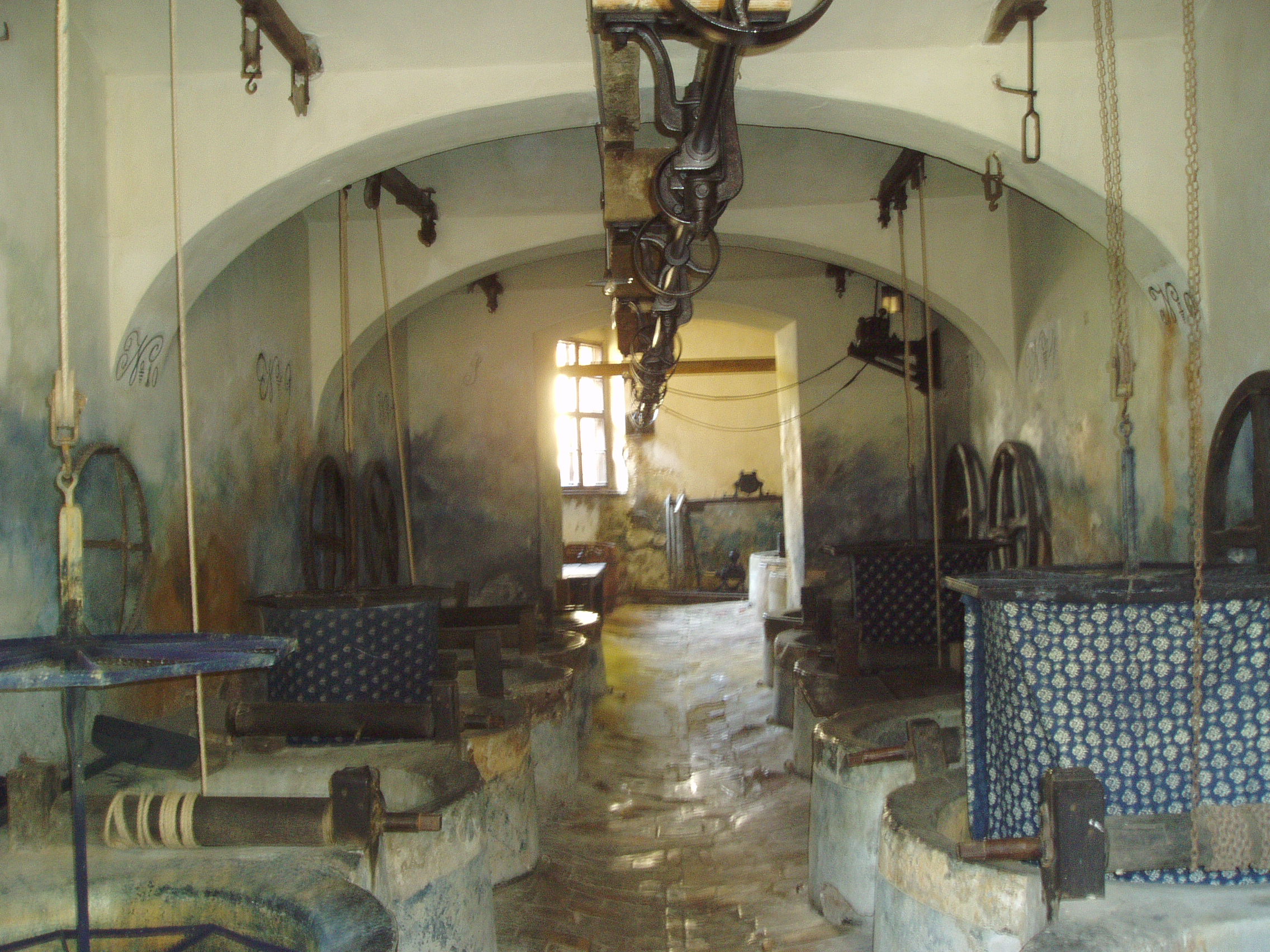 Nyilvános 1159 | 1838 | Pápa, Március 15. tér 12. Kékfestő Múzeum | Az 1962-ben megnyílt pápai Kékfestő Múzeum az egykori Kluge cég üzemének épületében és berendezéséből alakult. A céget 1783-ban alapította Sárváron a Szászországból bevándorolt Carl Friedrich Kluge, aki azonban 1786-ban már Pápán ezen a helyen, a mai Március 15. tér 12. számú épületegyüttes elődjében dolgozott. Fia, Kluge Károly, majd unokája, Kluge Ferenc is az ő mesterségét folytatta. Leszármazottai abban is követték az alapító Carl Friedrichet, hogy hosszas külföldi tanulmányutakat tettek. A cseh, porosz, thüringiai, bajor, svájci és osztrák műhelyekben tapasztaltakat itthon is alkalmazták, s ezzel fokozatosan kiemelkedtek a többi pápai kékfestő közül. A múzeum utca felőli épülete még a XVIII. századból származik. A képen látható udvari, három emeletes üzemépületet az 1860-as években emelték. Földszintjén ma is látható a 15 medencét befogadó küpaszoba, az ún. fekete konyhában a kifőzést és a keményítést szolgáló katlanok sora. Az emeleten a tarkázás, a kézi nyomás helyiségei találhatók, fölöttük pedig a hatalmas zsalugáteres, fedett padlástér és az innen kiugró nyitott erkélyszárító. A virágzó cég munkáját visszavetette az első világháború anyaghiánya és a falusiak népviseletből való fokozatos kivetkőzése. Az üzem végérvényesen 1956-ban zárta be kapuját. Egy és háromnegyed évszázados fennállása folyamán a család hét generációja váltotta egymást. A múzeumban a családi nagyüzem írott és tárgyi emlékei, eredeti berendezési tárgyai láthatók. Emmellett az intézmény folyamatosan kapcsolatot tart a még működő kékfestőmesterekkel, iparművészekkel, akik termékeikkel, alkotásaikkal rendszeresen gyarapítják a gyűjteményt. Ezekből az adományokból és vásárlásokból jött létre a kortárs hazai kékfestő-mesterek és műhelyek termékeiből rendezett állandó kiállítás. A fénykép 2007 áprilisában készült. Felh. irod.: Domonkos Ottó - Tóth Sándorné: Pápa, Kékfestő Múzeum. Bp. 1995, Cartographia. /Tájak, Korok, Múzeumok kiskönyvtára 205./ |