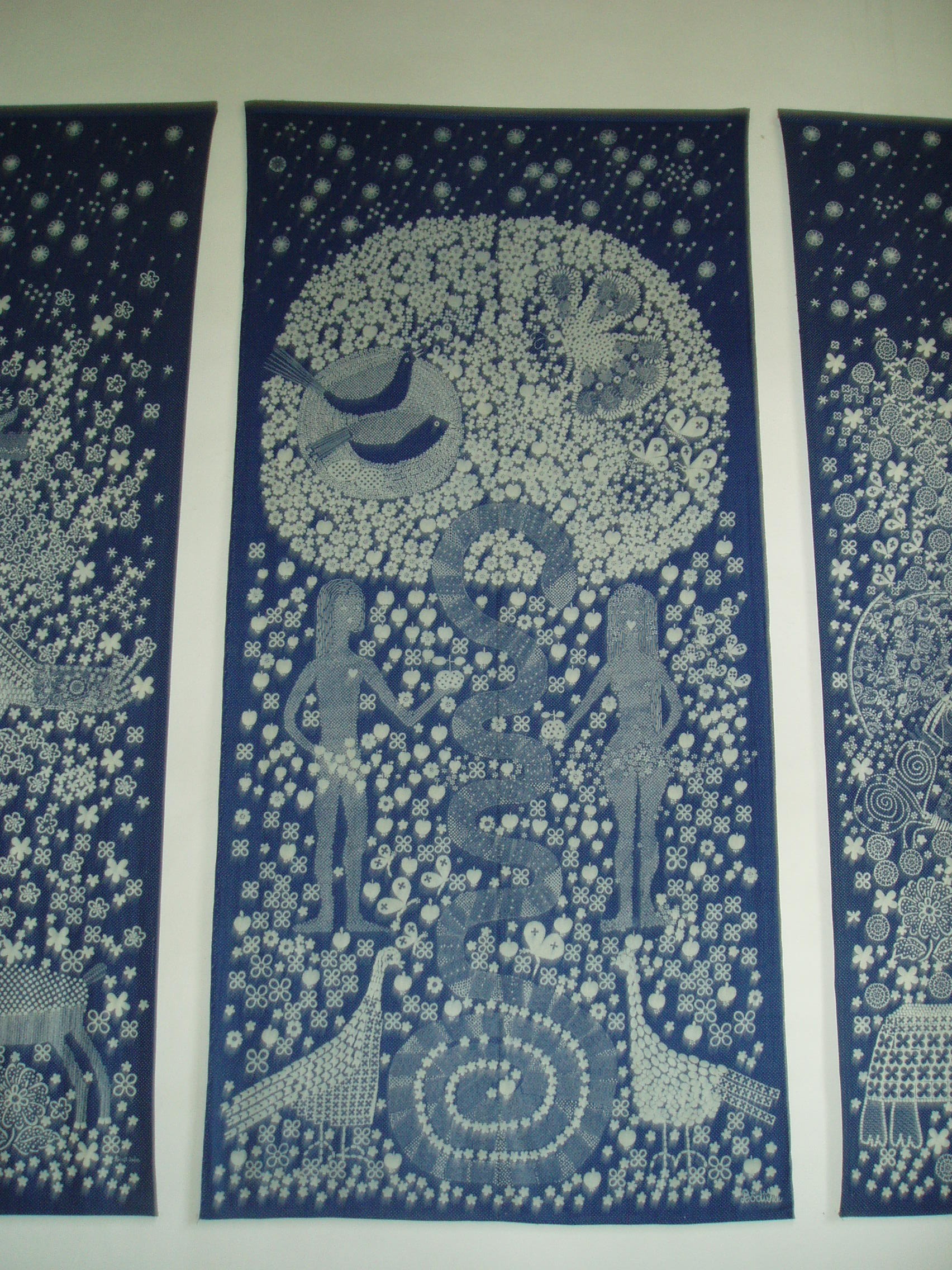 Nyilvános 1126 | 2025 | Pápa, Március 15. tér 12. Kékfestő Múzeum | Az 1962-ben megnyílt pápai Kékfestő Múzeum az egykori Kluge cég üzemének épületében és berendezéséből alakult. A céget 1783-ban alapította Sárváron a Szászországból bevándorolt Carl Friedrich Kluge, aki azonban 1786-ban már Pápán ezen a helyen, a mai Március 15. tér 12. számú épületegyüttes elődjében dolgozott. Fia, Kluge Károly, majd unokája, Kluge Ferenc is az ő mesterségét folytatta. Leszármazottai abban is követték az alapító Carl Friedrichet, hogy hosszas külföldi tanulmányutakat tettek. A cseh, porosz, thüringiai, bajor, svájci és osztrák műhelyekben tapasztaltakat itthon is alkalmazták, s ezzel fokozatosan kiemelkedtek a többi pápai kékfestő közül. A múzeum utca felőli épülete még a XVIII. századból származik. A képen látható udvari, három emeletes üzemépületet az 1860-as években emelték. Földszintjén ma is látható a 15 medencét befogadó küpaszoba, az ún. fekete konyhában a kifőzést és a keményítést szolgáló katlanok sora. Az emeleten a tarkázás, a kézi nyomás helyiségei találhatók, fölöttük pedig a hatalmas zsalugáteres, fedett padlástér és az innen kiugró nyitott erkélyszárító. A virágzó cég munkáját visszavetette az első világháború anyaghiánya és a falusiak népviseletből való fokozatos kivetkőzése. Az üzem végérvényesen 1956-ban zárta be kapuját. Egy és háromnegyed évszázados fennállása folyamán a család hét generációja váltotta egymást. A múzeumban a családi nagyüzem írott és tárgyi emlékei, eredeti berendezési tárgyai láthatók. Emmellett az intézmény folyamatosan kapcsolatot tart a még működő kékfestőmesterekkel, iparművészekkel, akik termékeikkel, alkotásaikkal rendszeresen gyarapítják a gyűjteményt. Ezekből az adományokból és vásárlásokból jött létre a kortárs hazai kékfestő-mesterek és műhelyek termékeiből rendezett állandó kiállítás. A képen Bódy Irén textiltervező, akadémikus, Munkácsy- és SZOT-díjas iparművész művének részlete látható. Bódy Irén 1991-ben életművét a pápai Kékfestő Múzeumnak ajándékozta, azóta látható ott állandó kiállítása. A fénykép 2007 áprilisában készült. Felh. irod.: Domonkos Ottó - Tóth Sándorné: Pápa, Kékfestő Múzeum. Bp. 1995, Cartographia. /Tájak, Korok, Múzeumok kiskönyvtára 205./ |