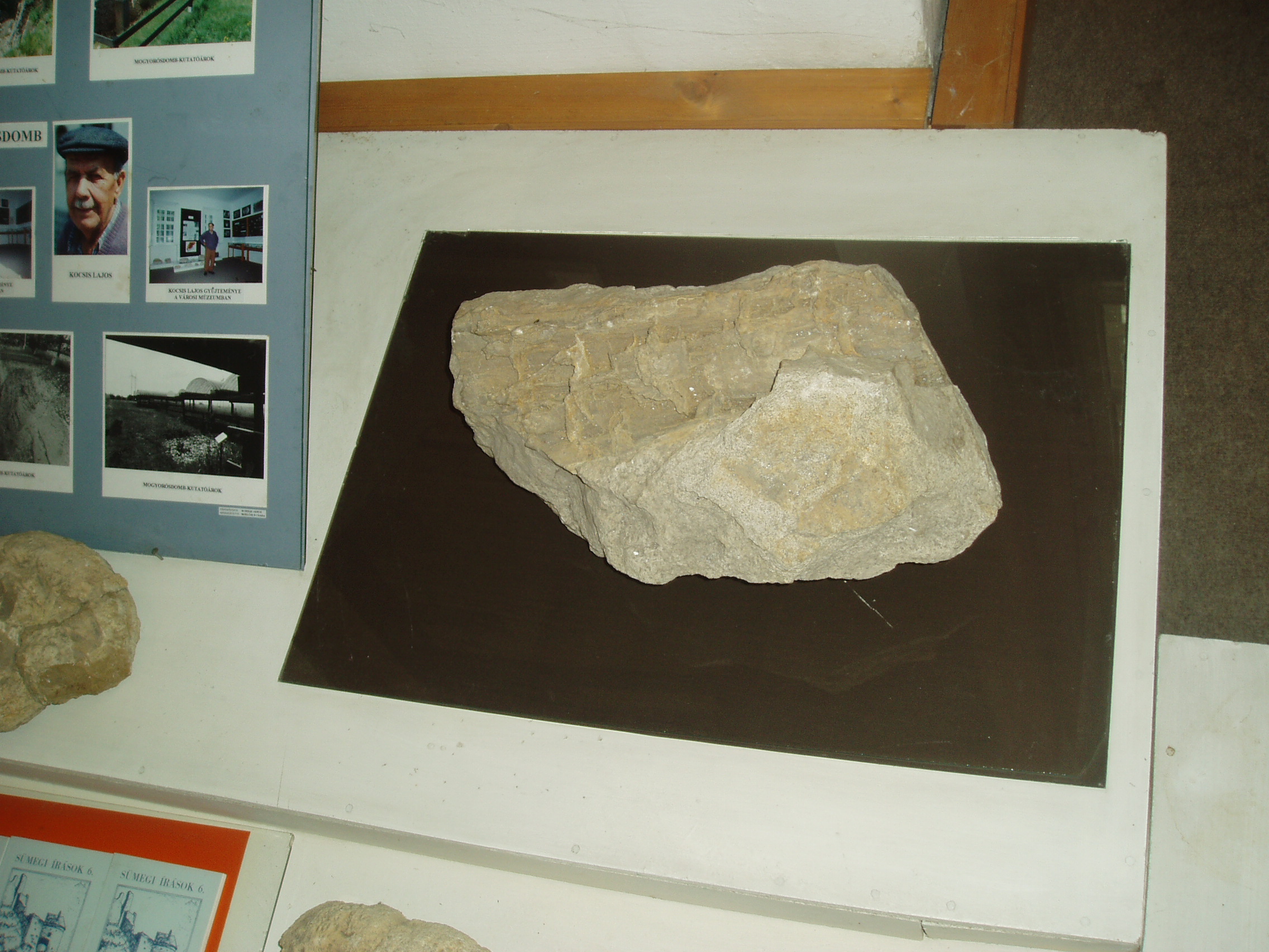 Nyilvános 1086 | 1615 | Sümeg, Kisfaludy tér 2. Városi Múzeum | A Kisfaludy Sándor szülőházában lévő múzeum külön teremben mutatja be Kocsis Lajos geológiai gyűjteményét. Kocsis Lajos nyugdíjas bányász, aki hosszú évtizedeken keresztül lelkesen gyűjtötte a Bakony geológiai múltját őrző kövületeket. Magángyűjteményéből 1984-ben nyílt állandó kiállítás. Az egykori élet nyomai mellett a velük egyidőben képződött, iparilag jelentős ásványi nyersanyagok mintapéldányai is láthatók itt: bauxit, barnaszén, mangánérc. A múzeum tulajdonába jutott gyűjtemény közel 4000 tételt számlál. A fénykép 2007 júniusában készült. Felh. irod.: Sümegi kalauz. Sümeg, Sümegi Fórum Alapítvány, 1993 |