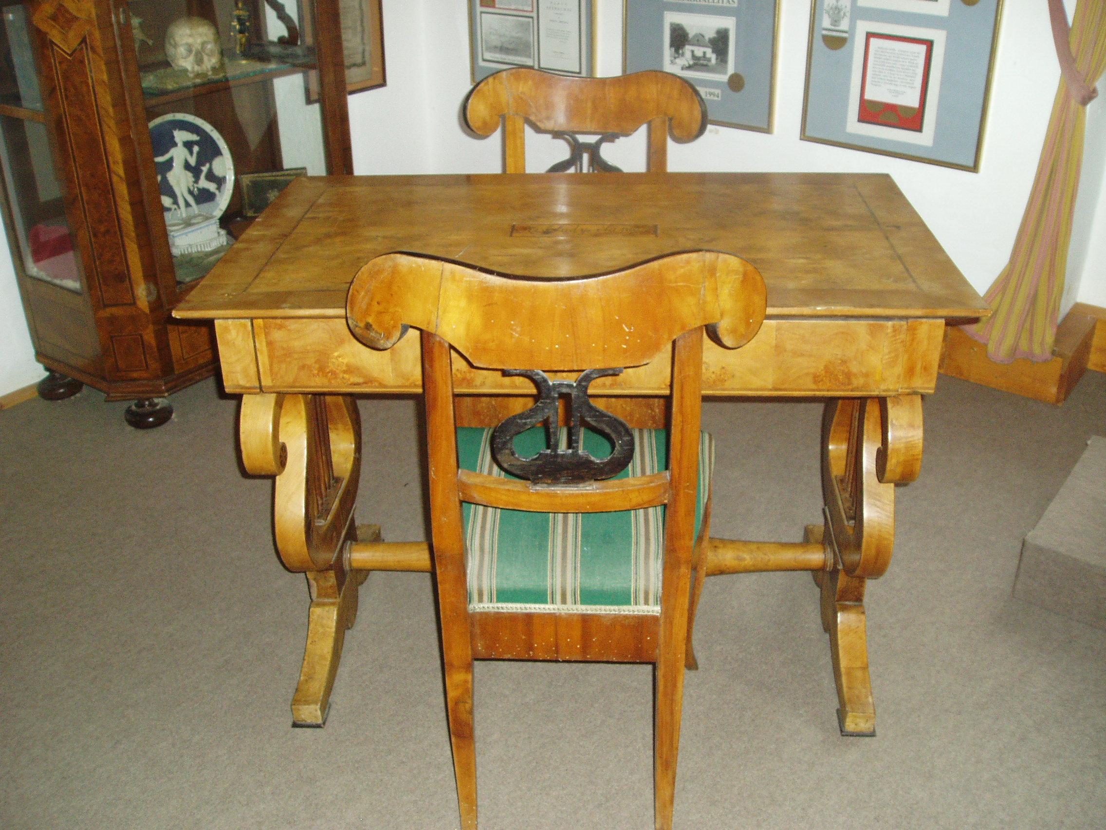 Nyilvános 1054 | 1502 | Sümeg, Kisfaludy tér 2. | Ebben a házban, amely ma a Városi Múzeum otthona, született és halt meg Kisfaludy Sándor. A XVII. században épült ház eredetileg a Sándorffy család tulajdona volt, a Kisfaludyakra örökség útján maradt. A XIX. században klasszicizáló stílusban többször is átépítették a boltíves barokk kúriát, ittlakása idején Kisfaludy Sándor is bővíttette. A költő 1772. szept. 27-én látta meg itt a napvilágot. Hat éves volt, amikor a család Tétre költözött (Károly öccse ott született 1788-ban). 1805-ben, házasságkötése után néhány évvel költözött vissza a szülőházába, s haláláig itt volt az otthona. Miután 1832-ben elveszítette szeretett feleségét, Szegedi Rózát, az idős költő újra megnősült, azonban második felesége, Vajda Amália is hamarosan meghalt. A költő ebben a házban halt meg 1844. október 28-án. Sírja a sümegi temetőben van (lásd: Sümeg, Temető). A szülőház 1950 óta múzeum. Szobái közül kettő őrzi egykori híres lakója emlékét. Személyes és családi tárgyai, bútorai, könyvek, képek ismertetik meg a látogatóval a Himfy-versekkel és a balatoni várak romantikus regéit megörökítő műveivel a maga korában nagy népszerűségnek örvendő költő életét és korát. Az első szoba eredeti relikviái a költő által használt asztal és két szék. A fénykép 2007 júniusában készült. Felh. irod.: Koppány Tibor - Kozák Károly: Sümeg útikalauz. Veszprém, Idegenforgalmi Hivatal, 1965 Sümegi kalauz. Sümeg, Sümegi Fórum alapítvány, 1993 Kisfaludy Sándor. Veszprém, Veszprém Megyei Múzeumi Igazgatóság. /Pannon Panteon 1./ |