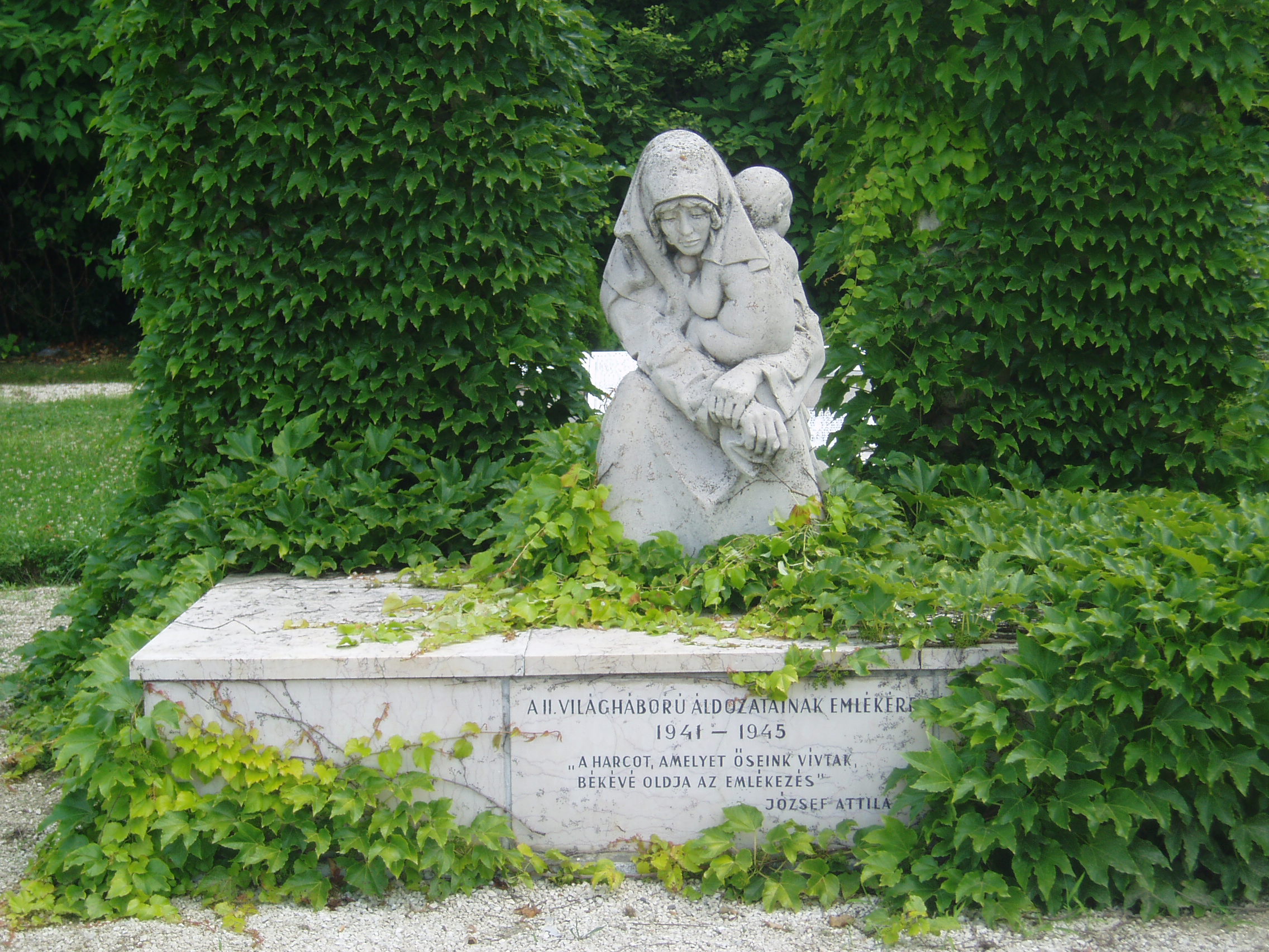 Nyilvános 1106 | 1638 | Sümeg, Kossuth utca 35. után | Az Eitner-ház (lásd: Kossuth u. 35.) északra néző oldalhomlokzata egy kis parkra tekint. A két világháború között itt állt az Országzászló, később pedig a szovjet emlékmű. 1991-ben itt állították fel a második világháború sümegi áldozatainak emlékművét, Marton László szobrászművész alkotását. A fénykép 2007 júniusában készült. Felh. irod.: Koppány Tibor - Kozák Károly: Sümeg útikalauz. Veszprém, Idegenforgalmi Hivatal, 1965 Látnivalók Veszprém megyében. Miskolc, Well-PRess, 2004 Sümegi kalauz. Sümeg, Sümegi Fórum alapítvány, 1993 |