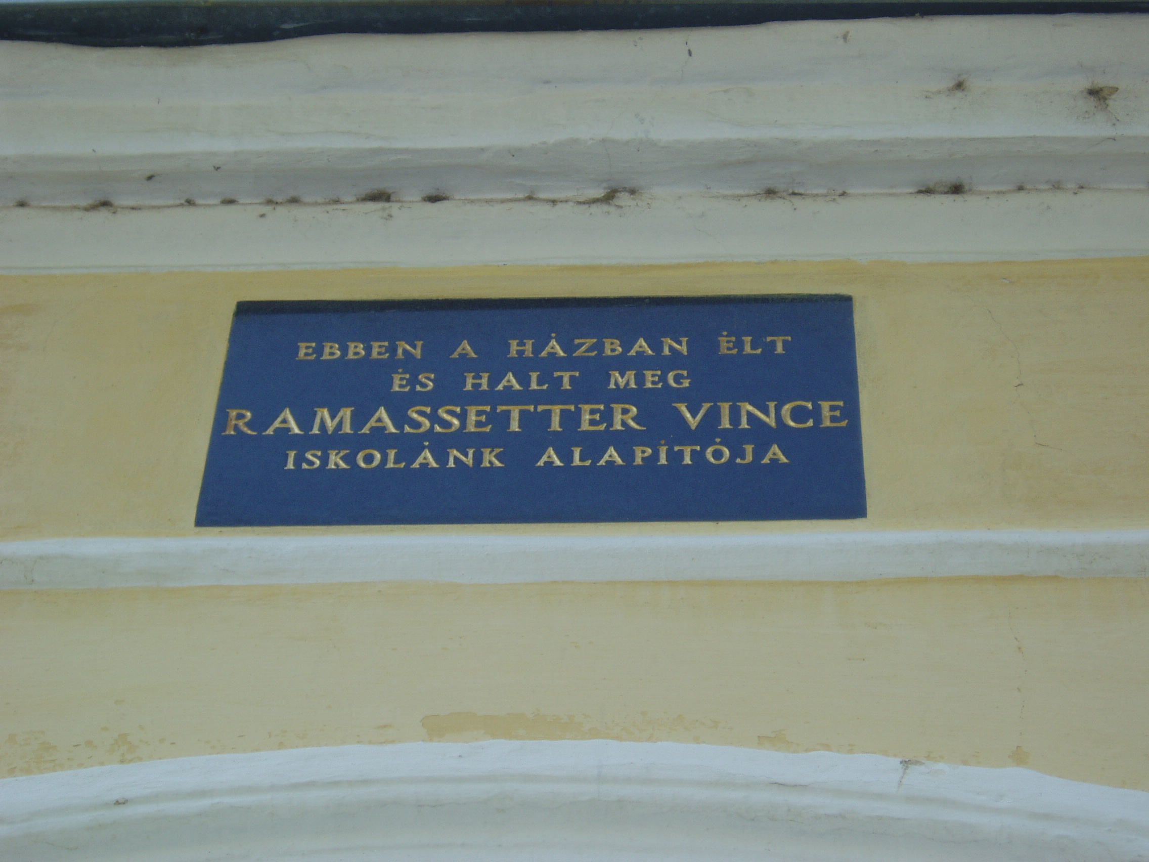 Nyilvános 1111 | 1611 | Sümeg, Ramassetter utca 10. | A Ramasetter utca házai jórészt a XVII. század második felében épültek, bár a legtöbbet később átalakították. A 10. számú épület is barokk stílusú, földszintes ház volt eredetileg, amelyre később emeletet építettek, s homlokzatát eklektikus stílusban átalakították. Az épület homlokzatán olvasható emléktábla szerint ebben a házban élt és halt meg Ramassetter Vince, "Sümeg atyja". Ramassetter Vincének a városban egészalakos szobra (lásd: Sümeg, Kossuth u. 13.) és több emléktáblája is látható, köztük a közelben álló szülőházán is (lásd: Sümeg, Deák F. u. 6.). A város jótevője a helyi köztemetőben nyugszik (lásd: Sümeg, Temető: Ramassetter Vince sírja). A fénykép 2007 júniusában készült. Felh. irod.: Koppány Tibor - Kozák Károly: Sümeg útikalauz. Veszprém, Idegenforgalmi Hivatal, 1965 Veszprém megyei életrajzi lexikon. Veszprém, Veszprém Megyei Önkormányzat Közgyűlése, 1998 www.ekmk.hu/emlekhely/Emlekhelyek.html |