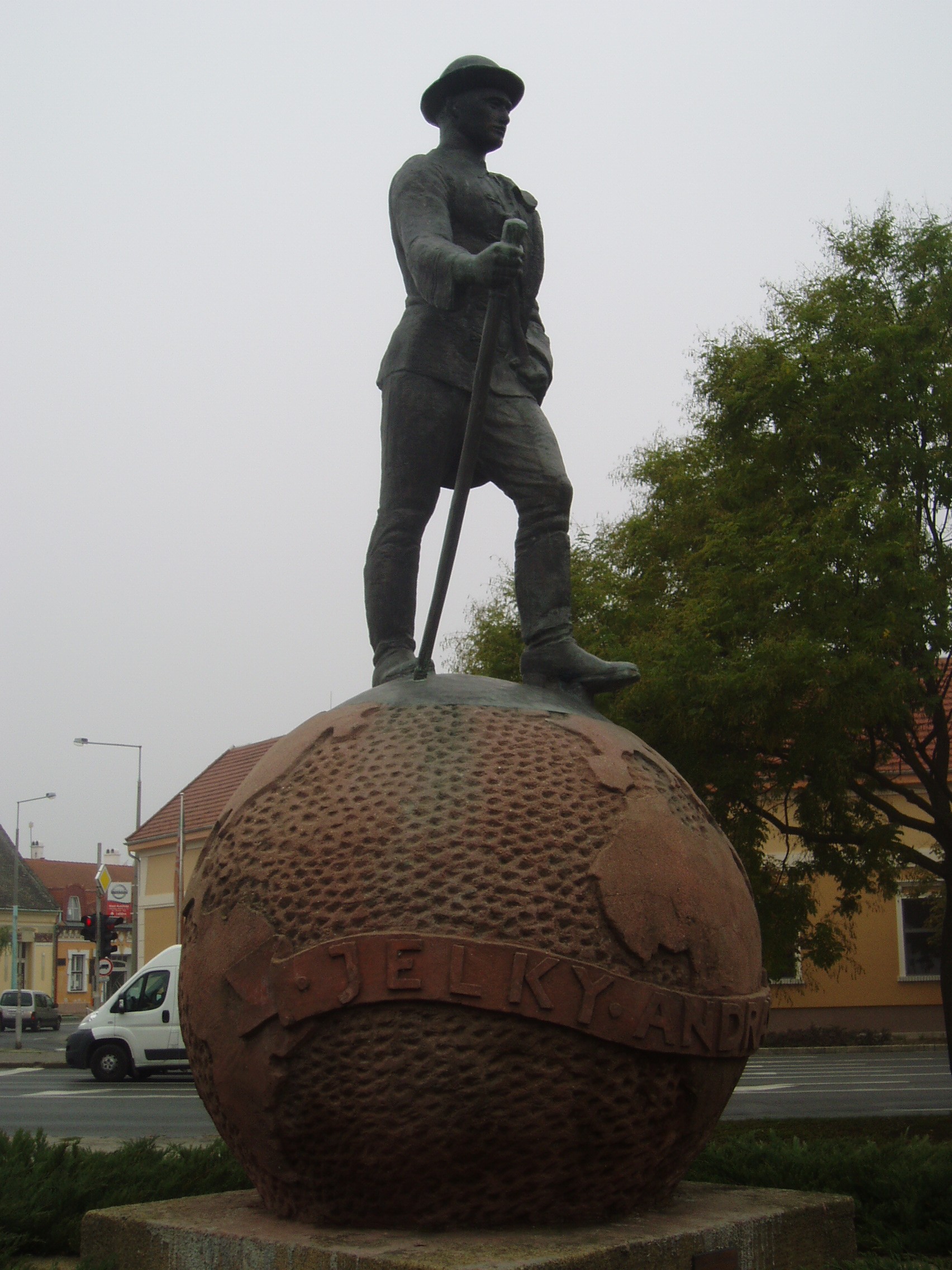 Nyilvános 1143 | 1929 | Baja, Jelky András tér: Jelky András szobra | A város egyik kedves jelképe a bajai születésű, szabólegényből lett világutazó Jelky András földgömbön álló, vándorbotos szoboralakja. A bronzszobor Medgyessy Ferenc, a vasbeton földgömb Miskolczy Ferenc alkotása. Jelky András a Bajai Belvárosi Plébánia anyakönyvi bejegyzése szerint 1738. április 20-án született. Édesapja kiszolgált császári katona volt, aki Baján szabóként dolgozott. Fiát – hasonlóképp annak bátyjához, aki a bécsi császári ruhatárnál szabóskodott – szintén szabónak szánta. 1754. március 13-án kelt vándorútra. Európai kalandozásai közben Nimvegenben erőszakkal besorozták katonának és 1755. október 30-án elindult vele a hajó Holland-Kelet-India felé. Ekkor kezdődtek igazi kalandjai, melyek során megjárta Makaót, Batáviát, Ceylont - ez utóbbi helyen kis híján megették a kannibálok. Sok viszontagság után "haza"került Batáviába, ahol korábban megnősült. Komoly vagyont szerzett, és 1767-ben egy 1400 házból álló ültetvényt vett. 1770-ben a polgári őrség kapitányává nevezték ki, a holland követség titkos tanácsosaként többször járt követségben Japánban és Jáván. Felesége halála utánbús lemondott az állásáról, és 1776. október 25-én Európába utazott. 1777. október 2-án Bécsbe, ahol bátyját még életben találta. Bécsben nagy feltűnést keltett érkezésével, bemutatták Mária Teréziának is. 1778-ban Budán telepedett le. Ismét megnősült, s egy fia született. 53 éves korában tüdővészben hunyt el. Életútját Solymos Ede, a bajai múzeum igazgatója kutatta ki, regényt Hevesi Lajos írt róla. A fénykép 2007 októberében készült. Felh. irod.: Látnivalók Bács-Kiskun megyében. Miskolc, Well-PRess, 2002 Gál Zoltán: Jelky András, a világjáró bajai szabólegény. = Baja Story 2007. nov. 29. |