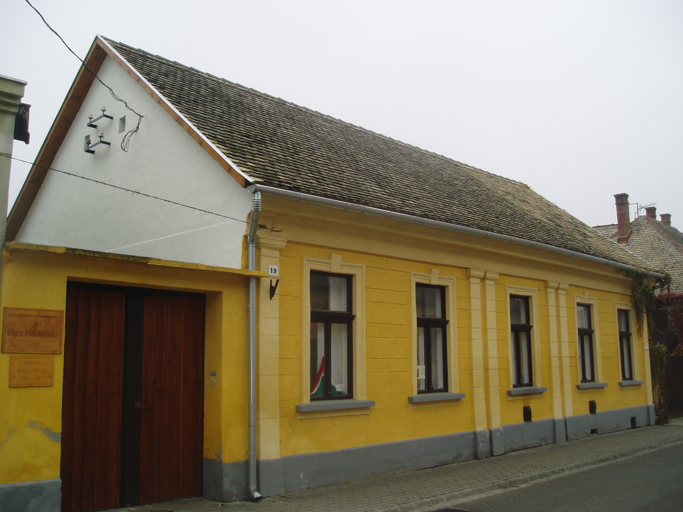 Nyilvános 1089 | 1551 | Baja, Jókai utca 19. Éber Emlékház | Baja keskeny, csendesen kanyargó utcájában áll id. Éber Sándor festőművész egykori otthona, a mai Éber Emlékház. Id. Éber Sándor (1878–1947) Székely Bertalan növendéke volt a Mintarajziskolában. A Tanítóképző Intézet tanáraként érkezett Bajára 1902-ben, ahol két évtizeden keresztül tanított. Művészként elsősorban a monumentális festészet vonzotta: élete során 22 templom, illetve iskola falát díszítette kissé szecessziós, néhol magyaros elemekkel díszített seccóival, freskóival. Harmonikus családi életet élt Baján megismert feleségével, s hét gyermeke született. Közülük leánya, Éber Anna (1905) és fia, Éber Sándor (1909–1985) lett neves képzőművész. Bajai lakásuk valóságos múzeum volt, benne saját képekkel és a környéken gyűjtött népművészeti tárgyakkal. A hangulatos házat festők, írók, esztéták is látogatták, s a műterem a helyi művészeti élet centruma és tanúja lett. Ma nyilvános múzeumként látogatható, miután ifj. Éber Sándor több évtizeden át hűségesen gondozta és bővítette a családi hagyatékot. A fénykép 2007 októberében készült. Felh. irod.: Látnivalók Bács-Kiskun megyében. Miskolc, Well-PRess, 2002 Kovács Zita: Az Éber-emlékház. Baja, Türr István Múzeum, 1999 |