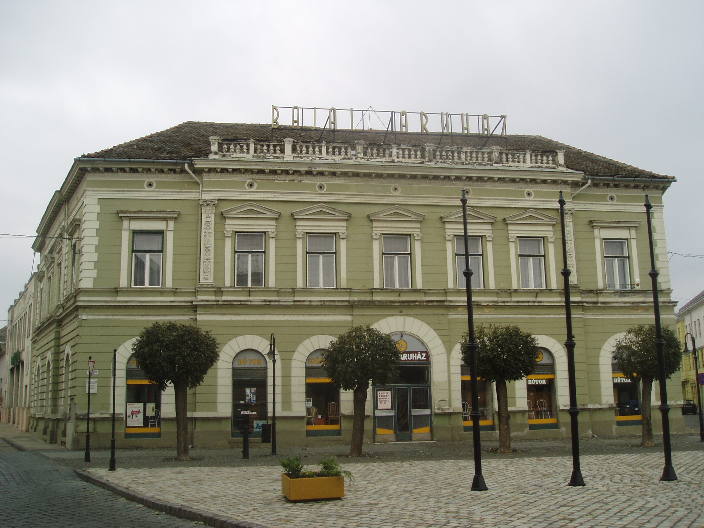 Nyilvános 1130 | 1827 | Baja, Szentháromság tér 3. | A bajai Szentháromság teret magyarországi Szent Márk térként emlegetik. Értékét nemcsak épületei, hanem kövezete is adja. A teret, amely három oldalról beépített, s nyitott negyedik oldala a Sugovicára néz, lóhere formában keresztezik az utak. A teret városképi jelentőségű épületek veszik körül, ezek egyike a 3. számú, 1880 körül eklektikus stílusban épült városi palota. Itt működött egykor a Reich Farkas és Fiai cég áruháza. A fénykép 2007 októberében készült. Felh. irod.: Látnivalók Bács-Kiskun megyében. Miskolc, Well-PRess, 2002 Magyarország műemlékjegyzéke: Bács-Kiskun megye. Bp. Kulturális Örökségvédelmi Hivatal, 2006 |