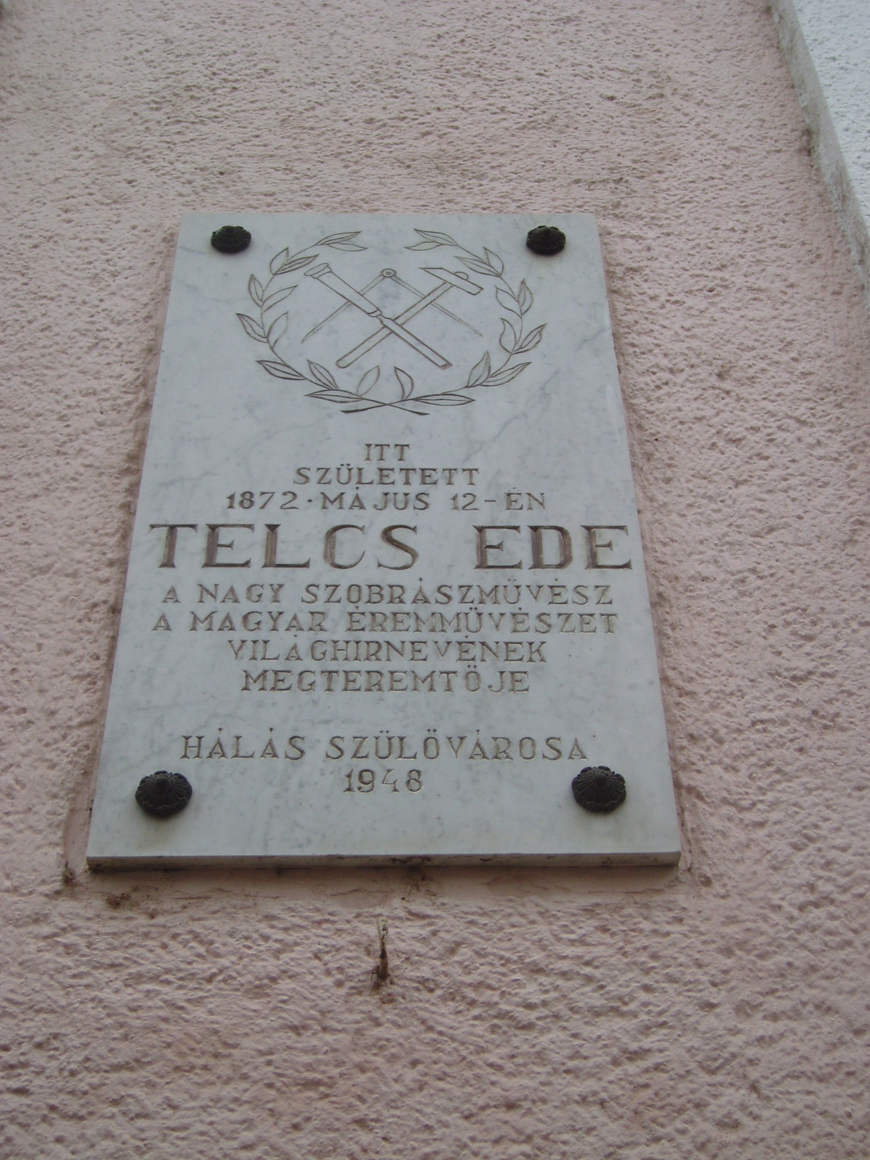 Nyilvános 1150 | 1719 | Baja, Táncsics utca 28. - Telcs Ede utca 1. | Mint a homlokzatán elhelyezett emléktáblán is olvasható, ebben az 1840 körül épült házban született 1872. május 12-én Telcs Ede szobrászművész, a magyar éremművészet világhírnevének megteremtője. Apai nagyapja Teltsch Áron, a morvaországi Nikolsburgból vándorolt be Magyarországra. Sírkőfeliratok vésésével, emblémák készítésével, címfestéssel foglalkozott. Édesapja, Teltsch Mór, Pápán látta meg a napvilágot 1842-ben. Cipészmesterként dolgozott. 1870-ben vette nőül az elszegényedett bajai gabonakereskedő lányát, Wollner Annát. Tizenkét gyermekük született (közülük nyolc nőtt fel), másodikként Telcs Ede. Az ő gyermek- és ifjúkora idején a család már Szabadkán élt. 16 éves korában Bécsbe ment, ott vált szobrászművésszé. Sokoldalú szobrászati tevékenységet folytatott. Alkotott monumentális emlékszobrokat, mint például a budapesti Vörösmarty téren álló, Kallós Edévek közösen készített Vörösmarty-szoborcsoportot, s ő készítette Barabás Miklós és Munkácsy Mihály síremlékét. Hüvelyk Matyi című szobrának másolata Baján lakótelepi környezetben áll (lásd: Baja, Kölcsey utca 45.). Ugyannakkor egész életében foglalkoztatta az érme- és plakettszobrászat is. Budapesten hunyt el 1948-ban. Hagyatékát a Türr István Múzeum őrzi. A fénykép 2007 októberében készült. Felh. irod.: Magyarország műemlékjegyzéke: Bács-Kiskun megye. Bp. Kulturális Örökségvédelmi Hivatal, 2006 www.c3.hu/~aevk/bek/banati/telcs.htm |