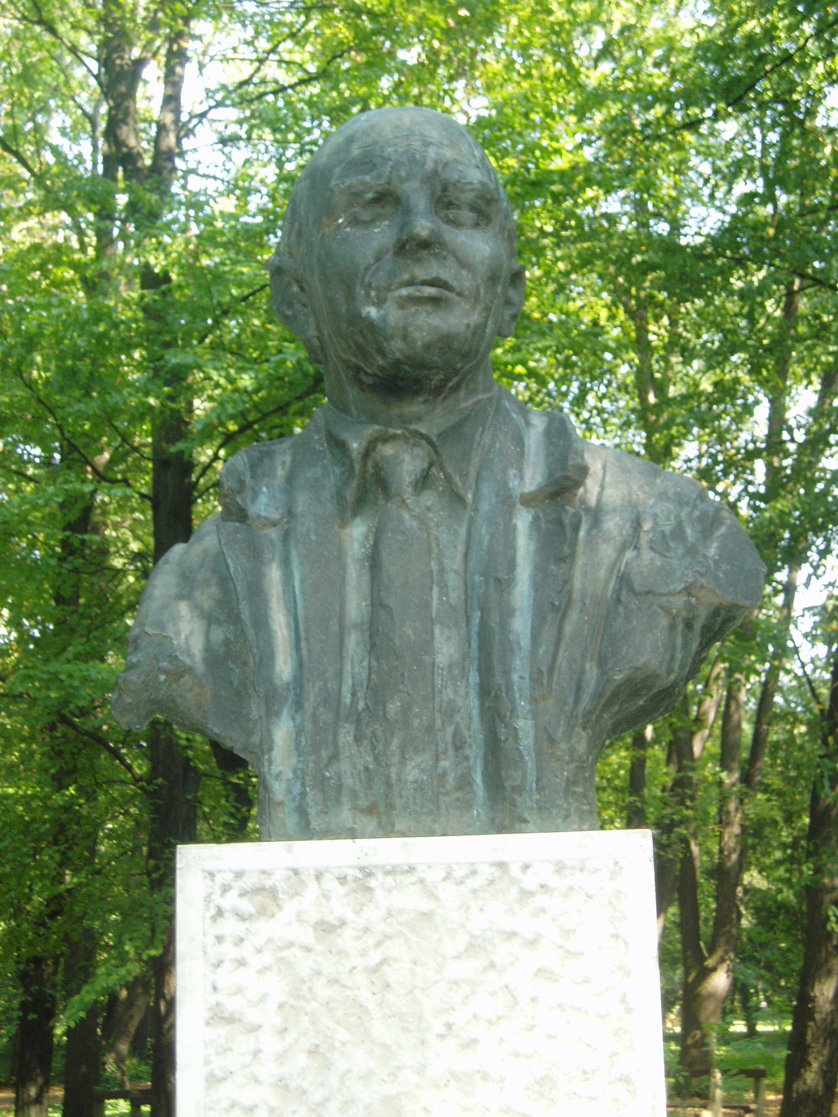 Nyilvános 1133 | 1755 | Sárospatak, Iskolakert: Pécsi Sándor szobra | A Református Kollégium (lásd: Sárospatak, Rákóczi u. 1.) bejáratával szemben találjuk az Iskolakertnek nevezett parkot. Az 1980-as években természetvédelmi területté nyilvánított Iskolakert sajátos nemzeti érték, mely egyedülálló az országban. Sétányai mentén Patakhoz kötődő jeles személyiségek szobrai állnak. Pécsi Sándor (1922-1972) színész, Kossuth-díjas, érdemes és kiváló művész bronzszobrát, Marton László alkotását 1984-ben állították. Pécsi Sándor nyolc évet töltött a híres sárospataki kollégiumban. Később sok szeretettel és hálával gondolt vissza a pataki diákévekre: "Itt faragtak embert belőlem" - mondta. A fénykép 2007 augusztusában készült. Felh. irod.: Látnivalók Borsod-Abaúj-Zemplén megyében. Miskolc, Well-PRess, 1995 www.sarospatak.hu/nevezetessegek www.szinhaz.hu/premier/2003marc/pecsi.shtml |