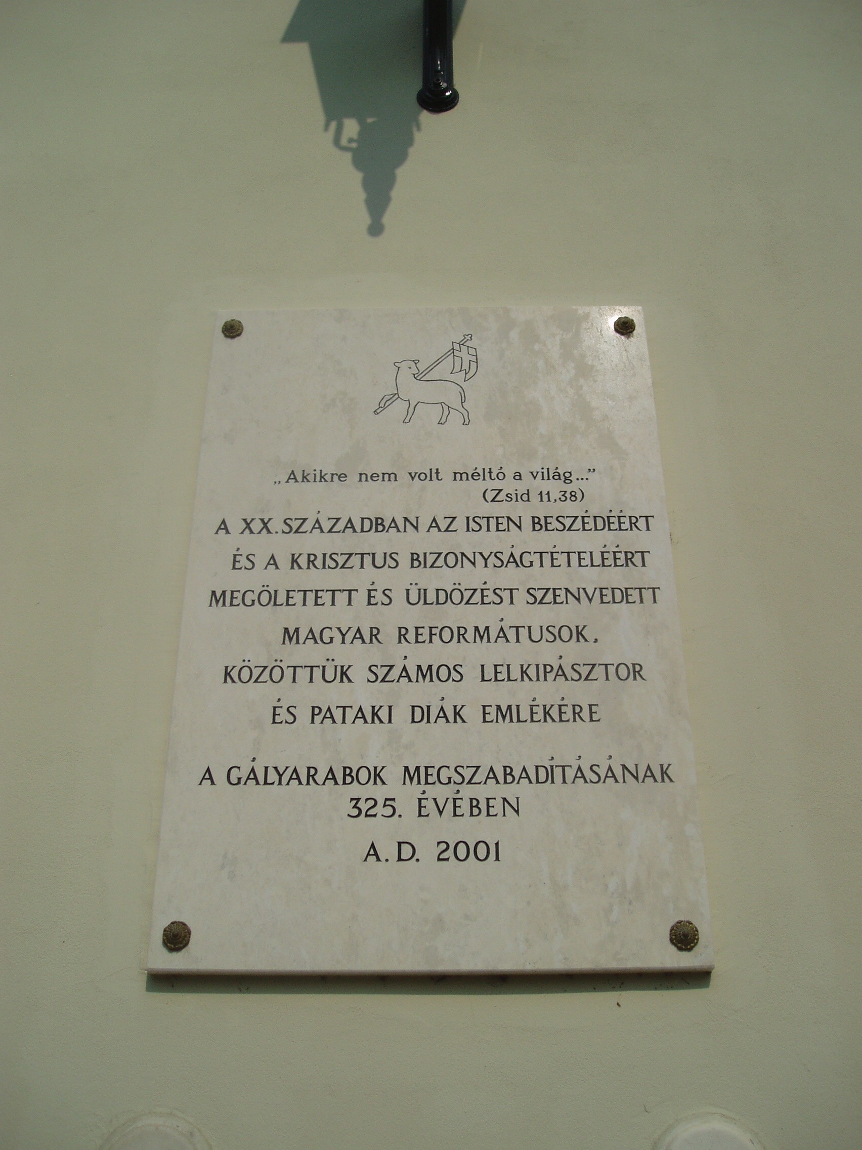 Nyilvános 1074 | 1571 | Sárospatak, Rákóczi utca 1. Református Kollégium | A kollégium főépülete, a Nagy Kollégium a Rákóczi út északi végén található, mely 1804–1814 között korai klasszicista stílusban épült. Szép ráccsal ellátott, háromíves nyílású kapuzat vezet be az un. „nagyportá”-ba, amelyet két sor vaskos pillér három hajóra oszt. Kétoldalt a falakon az iskolatörténet néhány fontosabb eseményének, illetve a kollégium nagy alakjainak bronz domborművű ábrázolásait helyezték el. A képen látható feliratos táblát az egykori gályarab pataki diákok megszabadításának 325. évfordulóján, 2001-ben állították. 1673-ban, a Wesselényi-összeesküvés (lásd: Sárospatak, Szent Erzsébet u. 19. Sub Rosa) leleplezése után I. Lipót császár református papokat és tanítókat ítélt gályarabságra. Közülük huszonketten pataki diákok voltak. Az ellenreformáció áldozatait 1676. február 11-én Ruyter holland admirális váltotta ki a rabságból és küldte haza (lásd még: Hajdú-Bihar megye/Debrecen, Emlékkert). A fénykép 2007 augusztusában készült. Felh. irod.: Détsy Mihály: Sárospatak. Bp. Corvina, 1974 Látnivalók Borsod-Abaúj-Zemplén megyében. Miskolc, Well-PRess, 1995 www.sarospatak.hu/nevezetessegek |