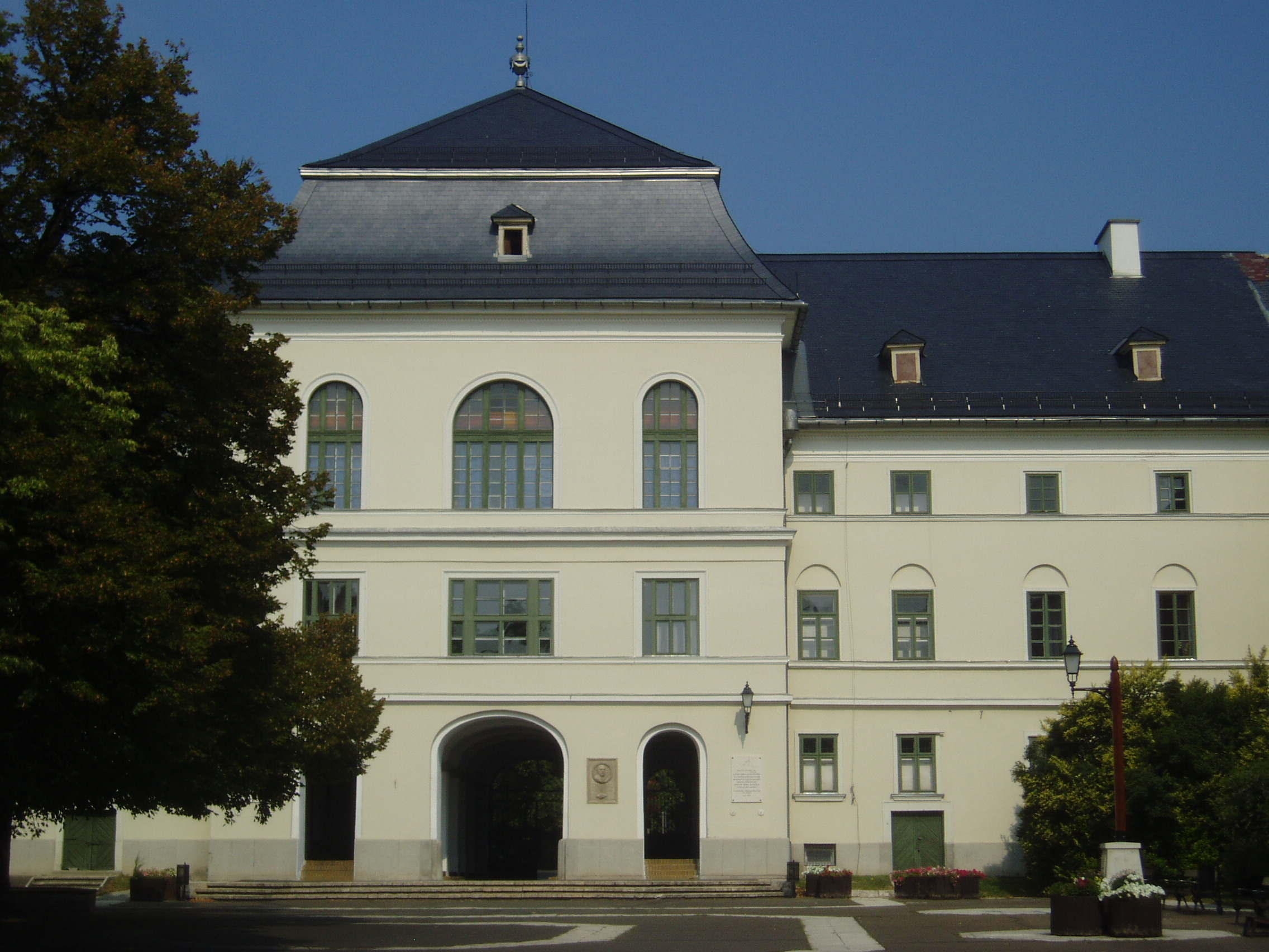 Nyilvános 1042 | 1593 | Sárospatak, Rákóczi utca 1. Református Kollégium | A Református Kollégium Sárospatakot évszázadokon át fontos kulturális központtá tette. Csokonai a „Múzsák székhelyé”-nek mondta, nevezték „Bodrog–parti Athén”-nek, s később, angol nyelven megszerezhető és érvényesíthető diplomájának köszönhetően érdemelte ki a „Magyar Cambridge” elnevezést. Ködöböcz József Sárospatak a magyar művelődés történetében című könyvében így írja le a kollégium épületegyüttesét: A kollégium főépülete, a Nagy Kollégium a Rákóczi út északi végén (Rákóczi út 1. sz.) található, mely 1804–1814 között korai klasszicista stílusban épült. Szép ráccsal ellátott, háromíves nyílású kapuzat vezet be az un. „nagyportá”-ba, amelyet két sor vaskos pillér három hajóra oszt. Kétoldalt a falakon az iskolatörténet néhány fontosabb eseményének, a kollégium nagy alakjainak bronz domborművű ábrázolása látható. Az épület manzárdtetős középső részének második emeletén van a díszterem, az egykori „nagy auditórium”, az iskolai ünnepélyek, istentiszteletek, előadások, egyéb rendezvények helyszíne. A nagyportáról balra a középiskolai leánykollégiumnak (régen: Teológiai Internátus), jobbra pedig a Tiszáninneni Református Egyházkerület Tudományos gyűjteményeinek (Nagykönyvtár, Adattár, Levéltár) a bejárata nyílik. A könyvtár első emeleti nagy termének belső kiképzését a magyar klasszicizmus nagy mestere, Pollack Mihály tervezte. Az iskola udvarán balra, a leánykollégium folytatásaként, egészen a Kossuth utcáig a gimnázium kétemeletes épülete áll. Jobbra az udvar déli oldalán található a legrégibb, ma még meglévő, kollégiumi épület, amely az 1770-es évek „provinciális építkezésének” szép emléke s amelynek földszinti termei a Tudományos Gyűjtemények gazdag múzeumi anyagának raktározására, az emeleti helyiségek pedig állandó kiállítás céljaira szolgálnak. A képen a Kollégium főépületének udvari homlokzata látható. A fénykép 2007 augusztusában készült. Felh. irod.: Ködöböcz József: Sárospatak a magyar művelődés történetében. Sárospatak, 1991 Détsy Mihály: Sárospatak. Bp. Corvina, 1974 Látnivalók Borsod-Abaúj-Zemplén megyében. Miskolc, Well-PRess, 1995 www.sarospatak.hu/nevezetessegek |