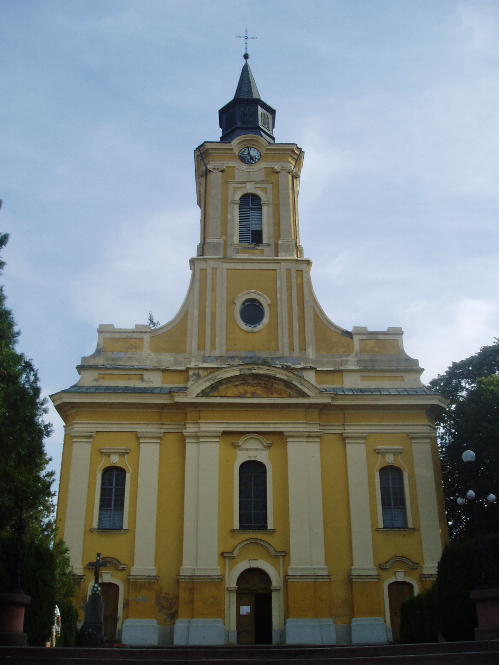 Nyilvános 1099 | 1665 | Sátoraljaújhely, Széchenyi tér: Nagytemplom | A későbarokk stílusú épület helyén a Szent Imréről elnevezett templom állt. A mai templom a többszöri tűzvész, átépítés és a katolikusok, reformátusok közötti birtoklás után, 1768 és 1798 között épült fel. Jelenlegi formáját a XX. század elején végzett bővítések során kapta. Főoltárát Hild Lipót készítette. A templom nyugati falánál áll Szent Flórián, a tűzoltók, kéményseprők, kovácsok, serfőzők védőszentjének szobra. A Nagytemplom és a Kossuth-szobor között az ún. Nimfás-kút csörgedezteti a hegyekből lefutó Dörzsik-forrás vizét. A fénykép 2007 augusztusában készült. Felh. irod.: Látnivalók Borsod-Abaúj-Zemplén megyében. Miskolc, Well-PRess, 2003 |