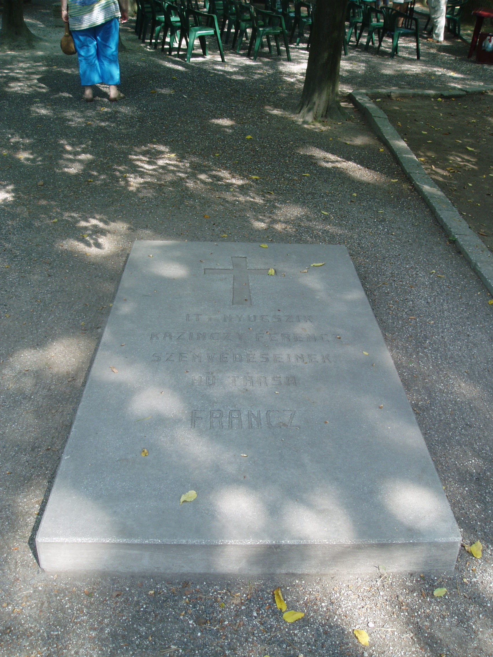 Nyilvános 1096 | 1626 | Széphalom: A Kazinczy család sírkertje | A Kazinczy Emlékcsarnok parkja - Kazinczy Ferenc egykori kúriájának kertje - ma természetvédelmi terület. A mauzóleumból fasor vezet a Kazinczy család sírkertjébe. A sírkert helyét 1806-ban, első gyermeke, az egyéves korában elhunyt Iphigenia halálakor Kazinczy maga jelölte ki. Már akkor megírta barátainak, hogy felesége és ő is oda fognak temetkezni. Kazinczy Ferenc 1831. augusztus 22-én hunyt el széphalmi otthonában. Sírja már a reformkorban zarándokhely lett. Járt itt Petőfi Sándor is. A családi temetőben nyugszik Kazinczynak az a Ferenc nevű szolgája, aki - követve urát - együtt raboskodott vele Munkács várában. A képen az ő sírja látható. A fénykép 2007 augusztusában készült. Felh. irod.: Látnivalók Borsod-Abaúj-Zemplén megyében. Miskolc, Well-PRess, 2004 www.vendegvaro.hu |
