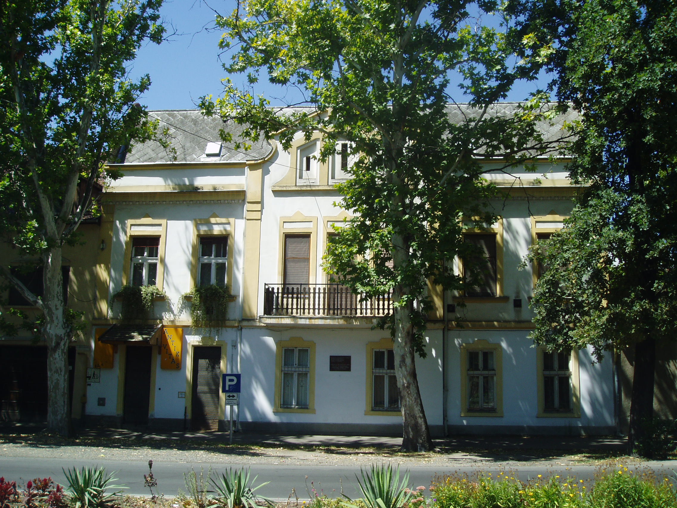 Nyilvános 1506 | 3573 | Hódmezővásárhely, Ady utca 4. | 1933-tól itt, az egykori Villasor 14. számú házban lakott dr. Makai Ödön ügyvéd, József Attila sógora. Első felesége József Jolán volt, akitől 1929-ben elvált és a másik nővért, József Etát vette feleségül. A vásárhelyi születésű ügyvéd korábban a Szántó Kovács János utca 28. számú házban, a városközponthoz közel lakott, majd a család ebbe a villa jellegű házba költözött. József Attila gyakran volt náluk vendégségben. 1934 tavaszán négy hónapon keresztül náluk lakott, több verse is itt született. Ekkor ismerkedett meg - ebben a lakásban - a Hódmezővásárhelyre látogató Móricz Zsigmonddal is. Megismerkedésük történetét Móricz József Attila halála kapcsán a Szép Szó folyóirat számára írta meg. Makainak és József Etának három gyermeke született: Zsuzsi, Péter és Ádám. Makai Péter jeles díszlet- és jelmeztervező lett, a Magyar Állami Operaházban működött. Az épületen 1970-ben helyezték el József Attila emléktábláját. A fénykép 2007 júliusában készült. Felh. irod.: Szigeti János: József Attila Hódmezővásárhelyen. = www.nlvk.hu/vik/jahmv.htm |