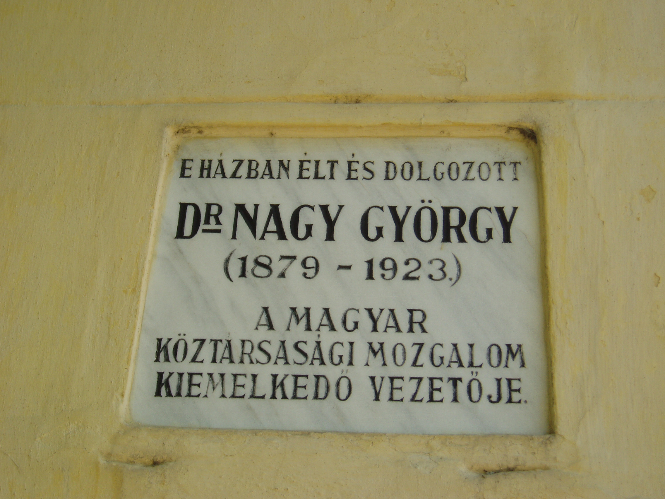 Nyilvános 1126 | 1657 | Hódmezővásárhely, Szántó Kovács János utca 28. | Ebben a házban lakott az 1930-as évek elején Makai Ödön, József Attila gyámja és sógora. Lakásukban többször megfordult a fiatal költő: 1934-ben itt dolgozott válogatott versein, amelyek Medvetánc címen jelentek meg. Makaiék később átköltöztek a város villanegyedébe (lásd: Hódmezővásárhely, Ady u. 4.). Az épületen József Attila és Nagy György emléktáblája olvasható. Nagy György (1879-1923) erdélyi születésű ügyvéd, politikus 1910-ben költözött Hódmezővásárhelyre, ahol ügyvédi irodát nyitott. 1910 és 1913 között lakott ebben a házban. Itt szerkesztette és adta ki Magyar Köztársaság című politikai folyóiratát. Az 1912-ben Budapesten megalakult Országos Köztársasági Párt elnökeként 1918. november 16-án az Országházban ő olvasta fel a köztársaság kikiáltásáról szóló határozatot. Emlékét utca, utcanévtábla, a gimnáziumban dombormű őrzi. Emlékszobája a Levéltárban (Bajcsy-Zsilinszky u. 23.) tekinthető meg. Díszsírhelyét 1988-ban avatták fel a Kincses temetőben. 1991-ben a város posztomusz díszpolgárává választotta. A fénykép 2007 júliusában készült. Felh. irod.: Barangolások Csongrád megyében. Miskolc, Well-PRess, 1997 /Vendégváró/ Arató László - Batyi Zoltán: Hódmezővásárhely az alföldi művészváros. Hódmezővásárhely, 2004 www.hodmezovasarhely.hu |