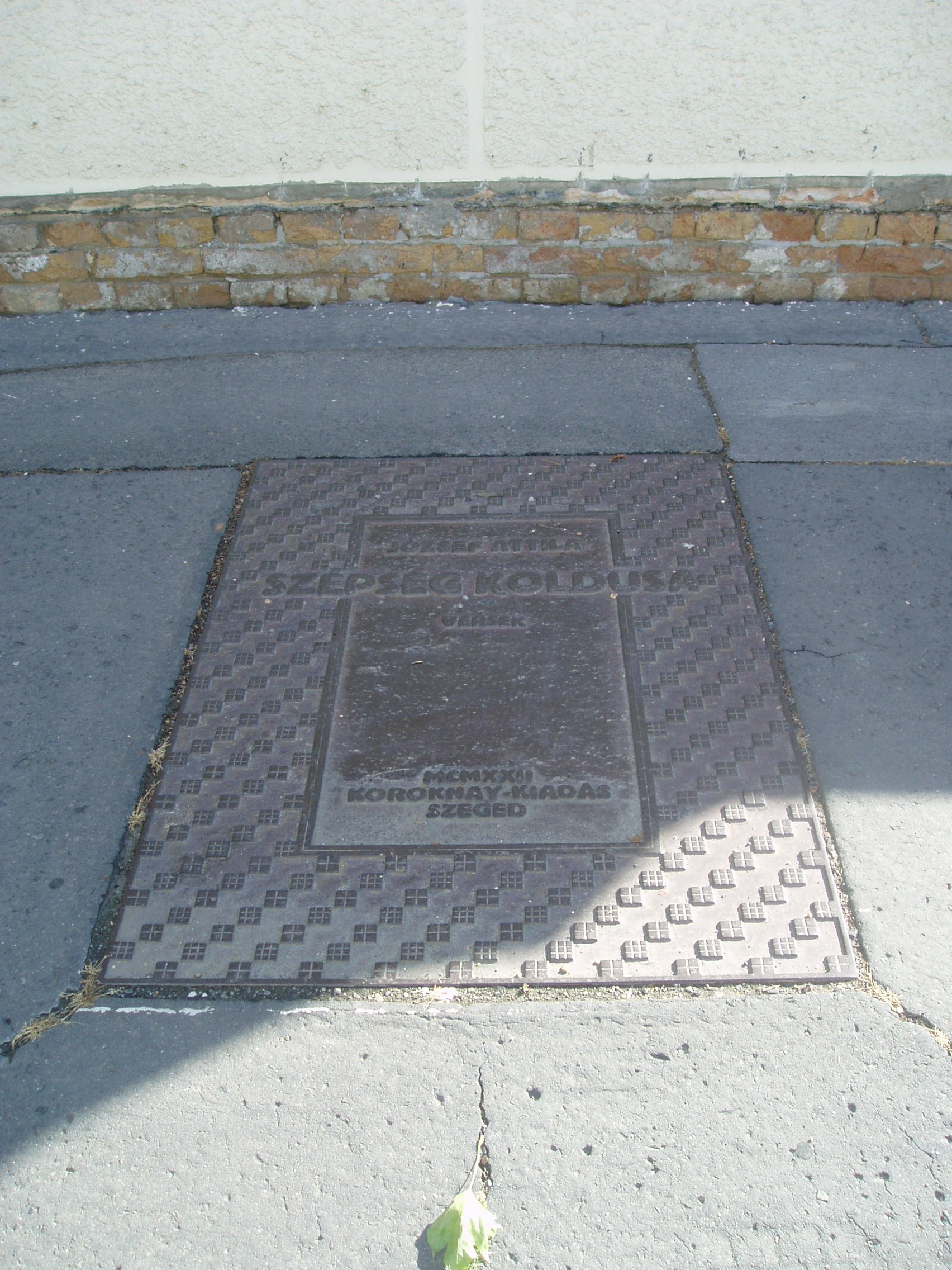 Nyilvános 1117 | 1672 | Makó, Csanád vezér tér 6. József Attila Gimnázium | A város központjából északra nyílik a sugárútszerű Csanád vezér tér. Nyugati oldalán áll a József Attila Gimnázium 1895-ben, eklektikus stílusban, Gerle Lajos tervei alapján emelt épülete. Itt tanított négy évig Juhász Gyula, itt tanult József Attila, majd Erdei Ferenc. A tizenöt és fél éves József Attila 1920 októberében érkezett Makóra. Verseire Juhász Gyula figyelt fel, akinek pártfogása révén a nyugat is közölt néhányat belőlük. Makói diák volt, amikor tizenhét éves korában Szegeden megjelent első verseskötete, a "Szépség koldusa", Juhász Gyula prófétikus előszavával: "A legnagyobb készséggel és örömmel vállalkoztam arra, hogy József Attila első verses könyvéhez előszót írjak. Ez a nagyon fiatal és nagyon tehetséges költő a legteljesebb mértékben megérdemli, hogy a figyelem feléje forduljon, hogy igaz szeretettel és reménységgel fogadja a magyar olvasóközönség és hogy a kritika se menjen el mellette közömbösen vagy ellenségesen és ne elégedjék meg vele szemben a nyomtatásban megjelenőknek rendesen kijáró vállveregetéssel. József Attila Isten kegyelméből való költő." Az épület előtt áll 2005-ben, születése centenáriumán újjáavatott szobra, a járdába ágyazottan pedig első verseskötetének bronzba öntött címlapja idézi emlékét. A fénykép 2007 júliusában készült. Felh. irod.: Barangolások Csongrád megyében. Miskolc, Well-PRess, 1997 |