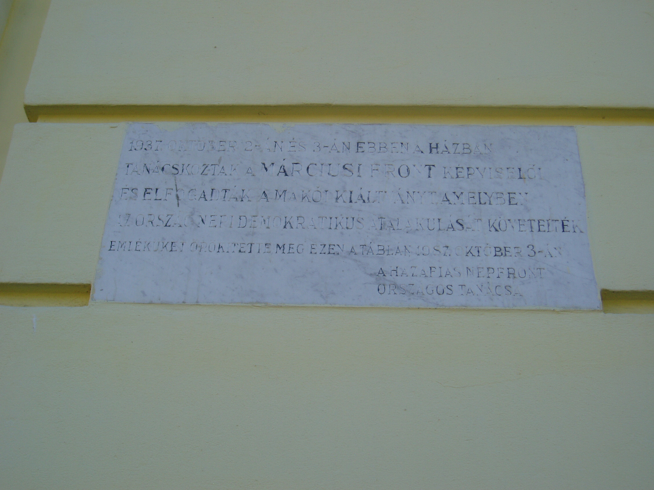 Nyilvános 1056 | 1488 | Makó, Széchenyi tér 10. Korona szálló | A Korona Szálló 1855-ben épült a korábbi püspöki vendégfogadó helyére. A jelenelegi impozáns, eklektikus épület több bővítés és felújítás eredményeként jött létre. Díszterme nemcsak vigalmaknak adott helyet, gyakran tartottak itt irodalmi és más rendezvényeket is. A Válasz folyóirat irodalmi estjén 1937. február 28-án itt alakult meg a Márciusi Front, amelyre az épület homlokzatán tábla emlékezik. A fénykép 2007 júliusában készült. Felh. irod.: Barangolások Csongrád megyében. Miskolc, Well-PRess, 1997 www.mako.hu Makó története 1920-tól 1944-ig. Makó, 2004. /Makó város monográfiája 6./ |