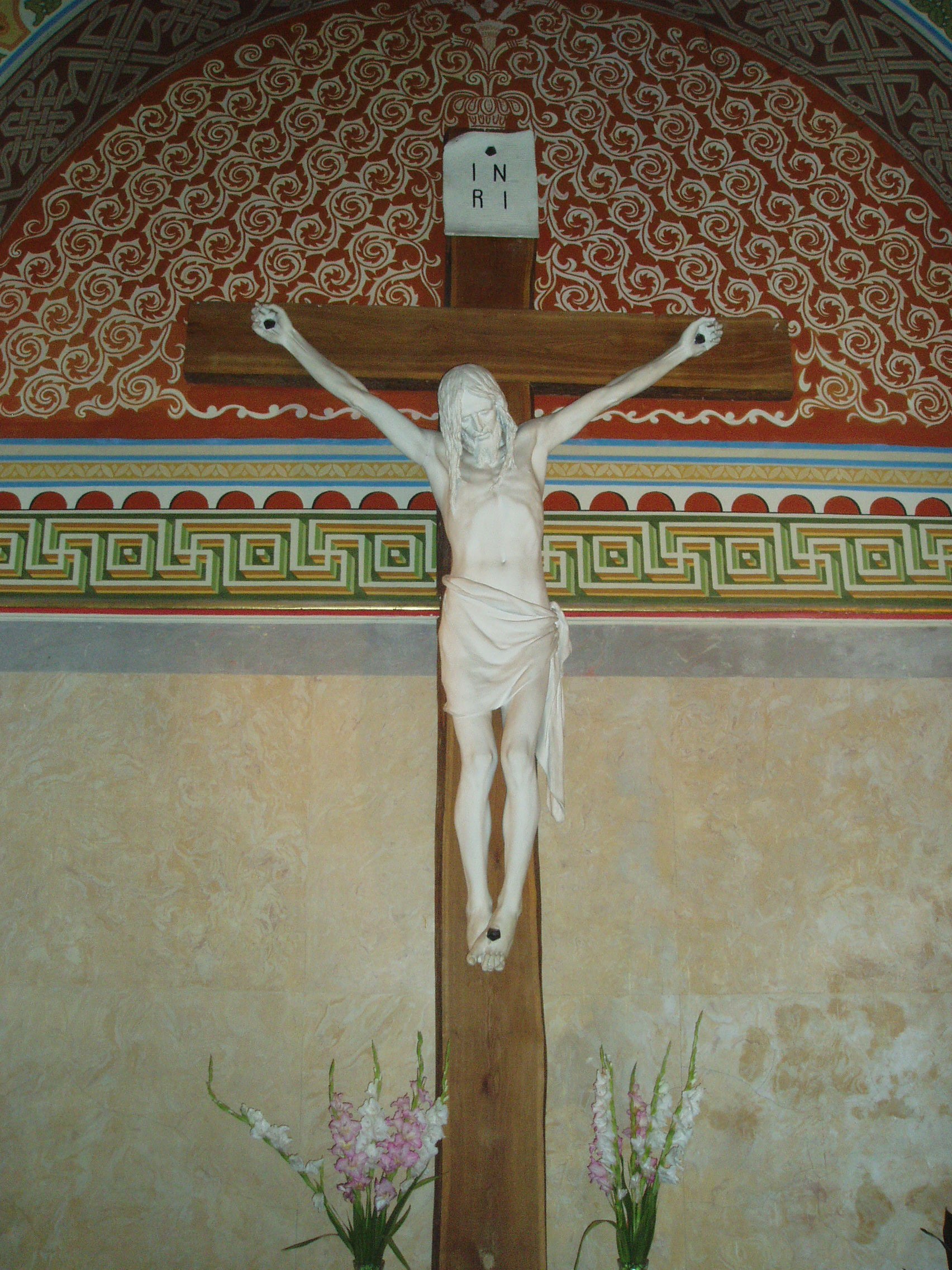 Nyilvános 1067 | 2156 | Szeged, Dóm tér: Fogadalmi templom | A monumentális és művészeti alkotásokban gazdag templombelső legértékesebb műkincse Fadrusz János: Krisztus a keresztfán című, 1892-ben készített szobra. Móra Ferenc egy írásában megörökítette, hogy Fadrusz önmagát kötöztette keresztre és az így készült fényképek alapján mintázta meg szobrát. Az alkotás az 1900. évi párizsi világkiállításon nagydíjat kapott, s Fadrusz még abban az évben az építendő Fogadalmi templomnak ajándékozta. A dóm felépüléséig a múzeumban helyezték el, később azonban megfeledkeztek rendeltetéséről, s csak 1971-ben került mai helyére. A fénykép 2007 júliusában készült. Felh. irod.: Péter László: Szeged. Bp. Panoráma, 1981 |
