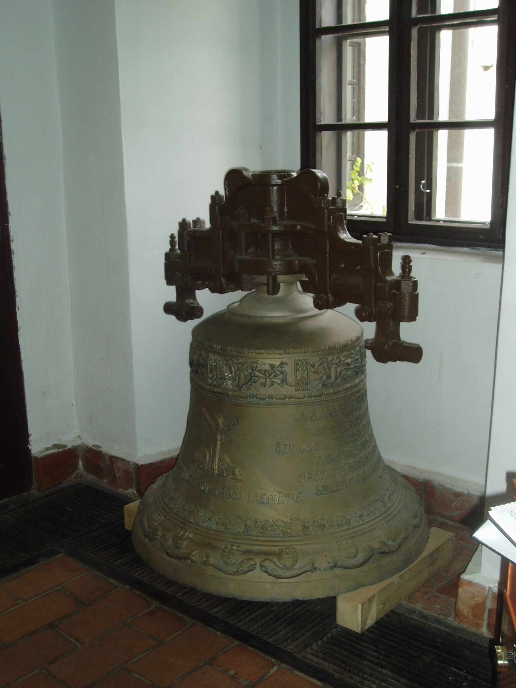 Nyilvános 1088 | 1653 | Szeged, Mátyás tér: Alsóvárosi plébániatemplom | A nagyszerű gótikus templom előterében tekinthető meg a világon egyedülálló "paprikaharang". A harangot 1921-ben szegedi paprikatermesztéssel foglalkozó családok készíttették Szent Piroska tiszteletére a templom háborúba küldött harangjainak pótlására. A fénykép 2007 júliusában készült. |