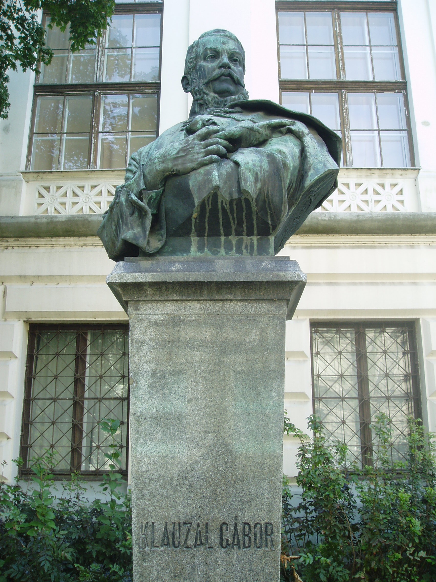 Nyilvános 1126 | 2412 | Szeged, Roosevelt tér: Klauzál Gábor mellszobra | A Közművelődési palota előtt 1906-ban helyezték el Klauzál Gábor mellszobrát, ifj. Vastagh György alkotását. Klauzál Gábor Pesten végzett jogot, s a hagyomány szerint amikor Imre bátyja hívására állást keresni jött Szegedre, kendőbe kötve, botja végén hozta minden vagyonát. Egy bálon hódította meg a szép Prezetska Máriát, egy jómódú gyógyszerész lányát. Bátyja és apósa vitte keresztül, hogy a jó képességű fiatal ügyvédet Csongrád megye 1828-ban első aljegyzőnek és fizetéses táblabírónak nevezte ki. Szeged 1832-ben követévé választotta. 1847-ben meghalt a felesége, így apósa házát ő örökölte. A szabadságharc bukása után kistétényi birtokán gazdálkodott. Az 1861. és 1865. évi országgyűlésen Szeged képviselője volt a Deák-párt programjával. Szegeden hunyt el, sírja a Belvárosi temetőben van (lásd: Szeged, Fonógyári út). Egykori lakóházának helyét emléktáblával jelölték meg (lásd: Szeged, Klauzál tér 8.). A fénykép 2007 júliusában készült. |
