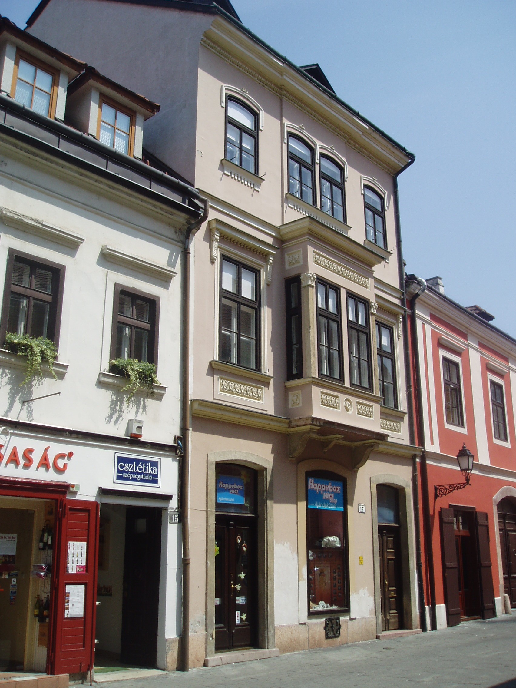 XIX. századi későromantikus lakóház a Győrben jellegzetesnek számító zárt erkéllyel.