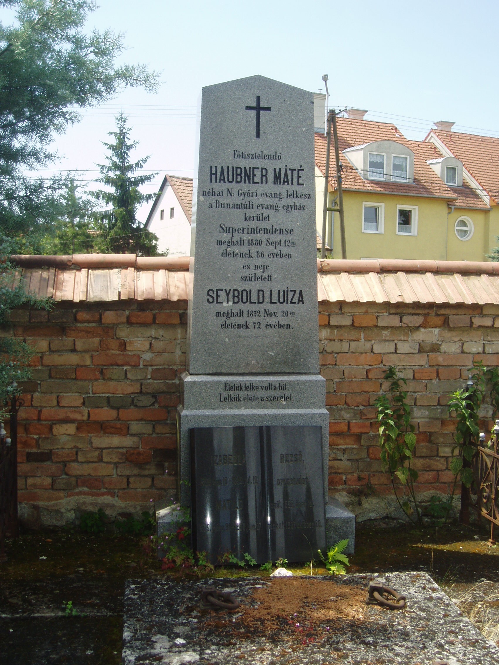 Nyilvános 1198 | 4146 | Sopron, Balfi út. Evangélikus temető. Haubner Máté sírja | A soproni evangélikusok 1674-ben nyitották meg temetőjüket, korábban a katolikusokkal együtt a Szent Mihály temetőbe temetkeztek. Haubner Máté (1794-1880) győri evangélikus lelkész volt. 1848/49-ben játszott szerepe miatt két évet Kufsteinben raboskodott. Élete alkonyát Sopronban töltötte. Vagyonát a dunántúli evangélikus egyházkerületi lelkész- és tanítóözvegyek és árvák gyámolítására hagyományozta. A fénykép 2008 júniusában készült. Felh. irod.: A Pallas nagy lexikona |