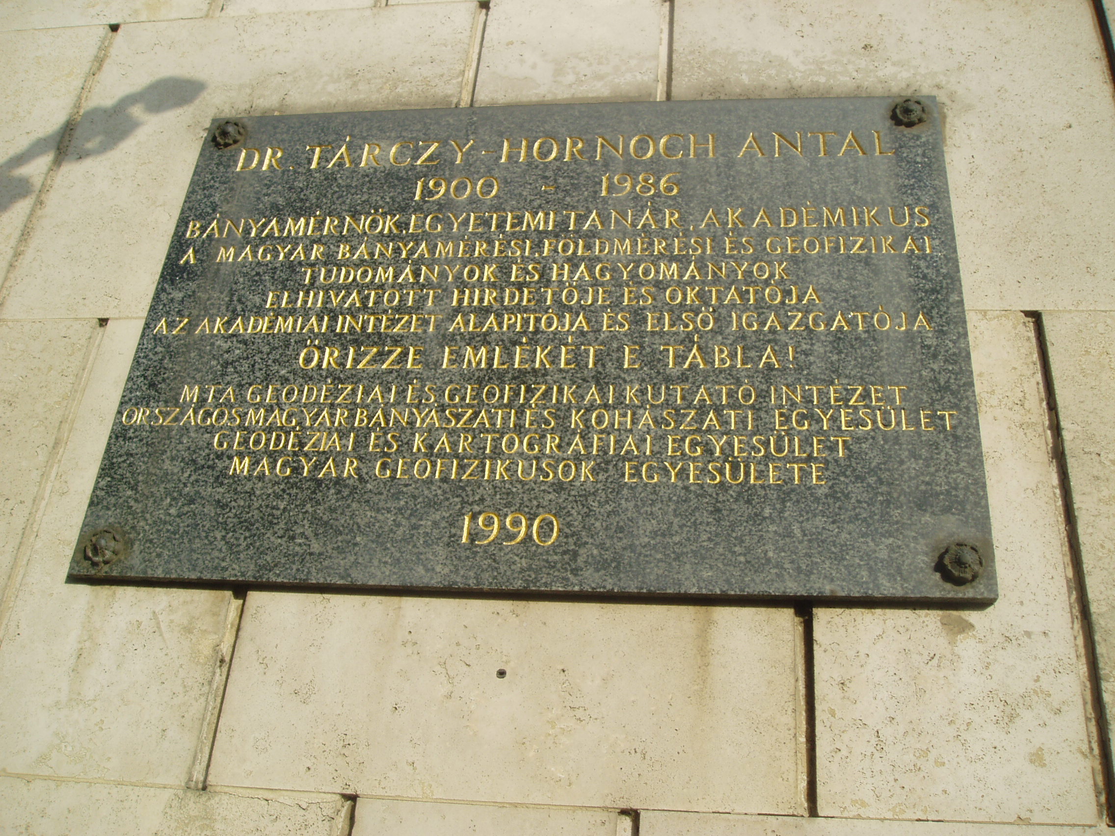 Nyilvános 1146 | 1851 | Sopron, Csatkai Endre utca 6-8. | A modern épületben a Magyar Tudományos Akadémia Geodéziai és Geofizikai Kutatóintézete működik. Az itt dolgozó mintegy 35 kutató geodéziai és geofizikai alapkutatásokban vesz részt. Homlokzatán 1990-ben avatták fel dr. Tárczy Hornoch Antal (1900-1986) emléktábláját. A bányamérnök, egyetemi tanár, akadémikus a magyar bányamérési, földmérési és geofizikai tudományok és hagyományok elhivatott hirdetője és oktatója volt. Kezdeményezésére indult meg Sopronban 1949-ben az önálló földmérőmérnök, 1951-ben pedig a geofizikus-mérnök képzés. Mellszobor is őrzi emlékét. A fénykép 2008 júniusában készült. Felh. irod.: http://www.ggki.hu |