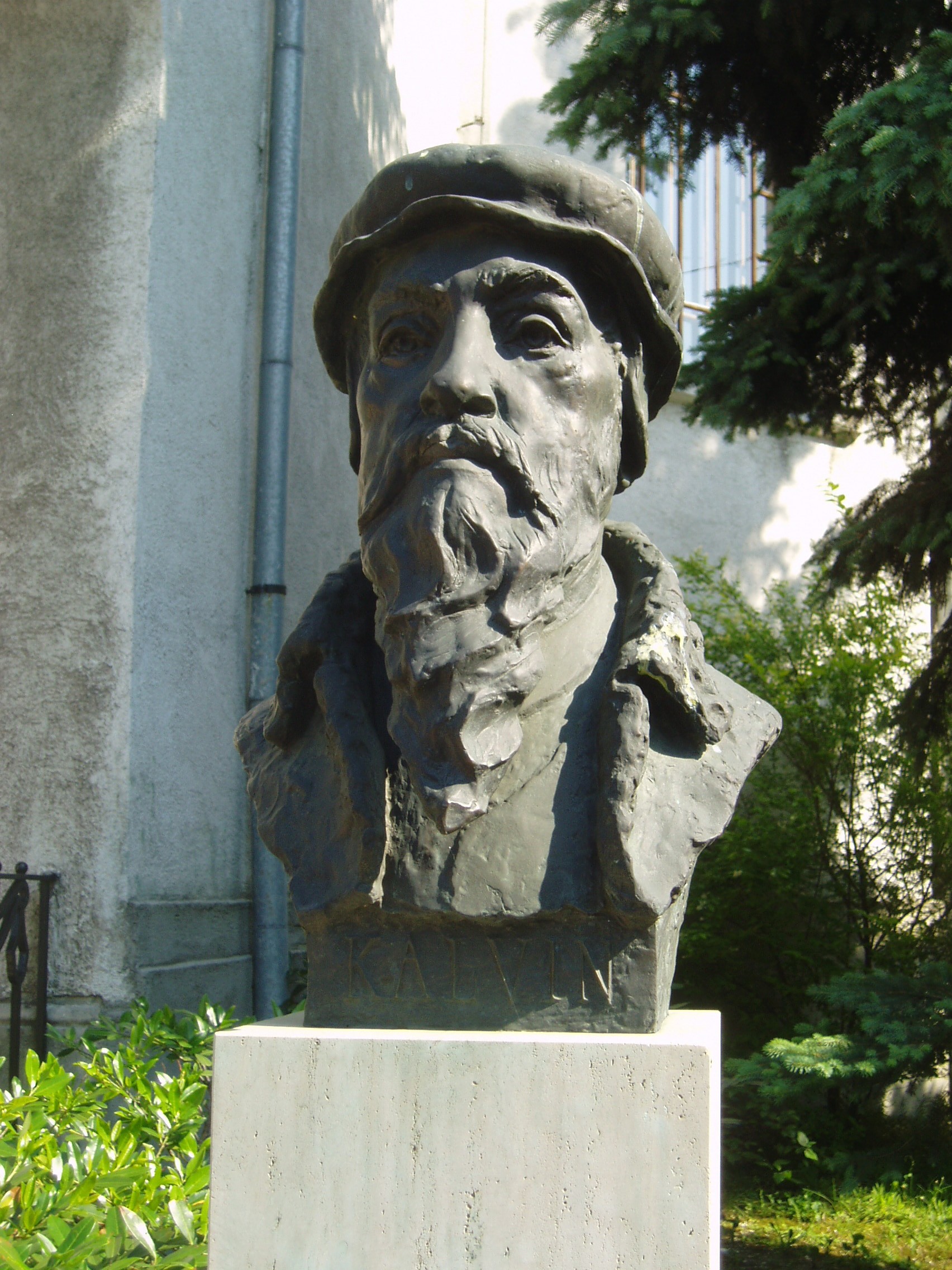 Nyilvános 1095 | 1668 | Sopron, Deák tér 2. Református templom | A Deák tér nyugati oldalán emelkedik a református templom. 1929-ben épült Hárs György, az Esterházy-uradalom főépítészének tervei szerint. Bejáratánál Kálvin János mellszobra áll, amelyet alkotója, Kutas László 2001-ben ajándékozott a városnak. A fénykép 2008 júniusában készült. Felh. irod.: www.reformatus.sopron.hu http://www.cyberpress.hu/article.php?id=3515 |