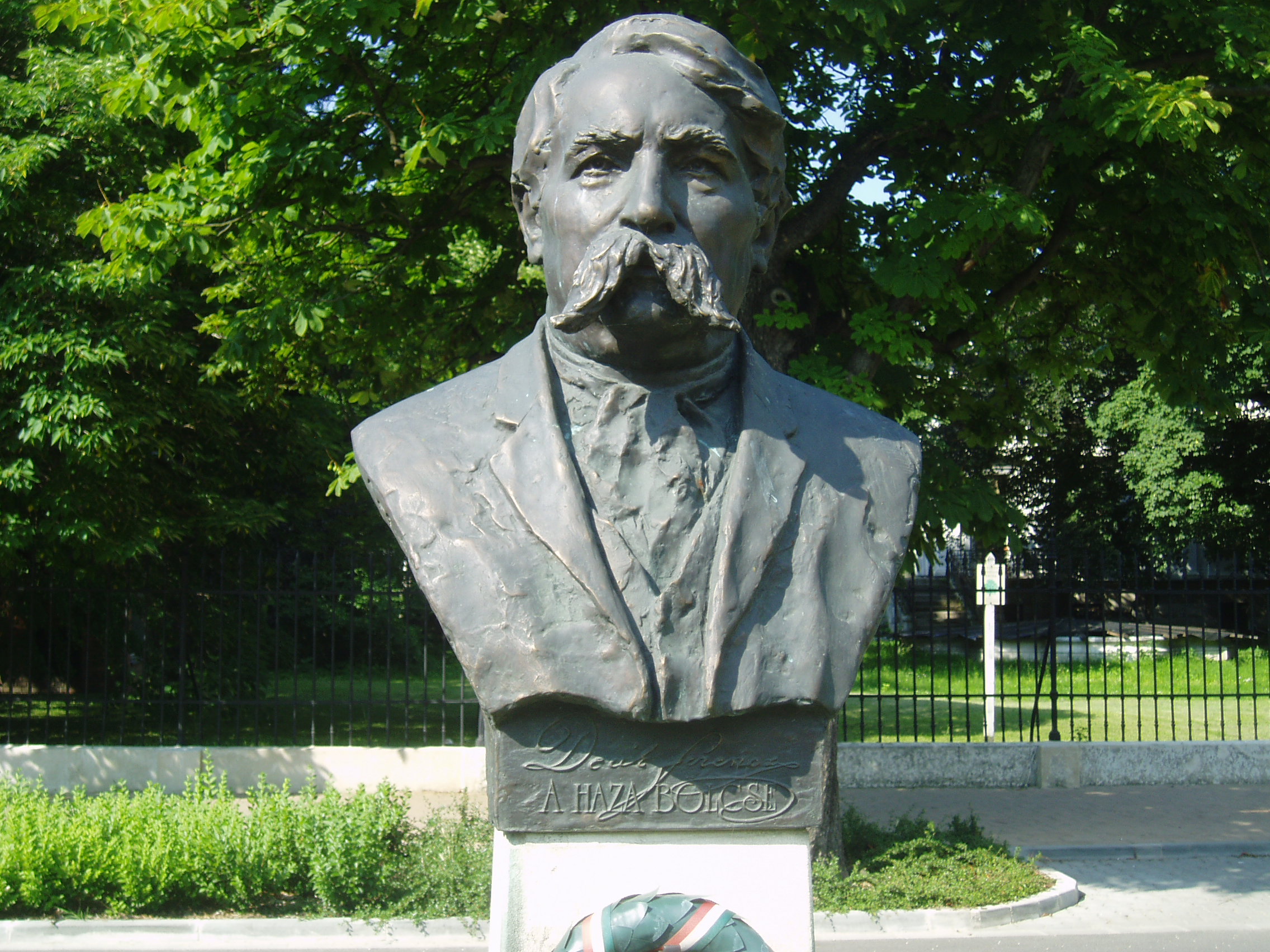 Nyilvános 1149 | 2396 | Sopron, Deák tér | Sopron leghosszabb terét az itt folyó Rák patak beboltozásával alakították ki s reprezentatív kialakítású, historizáló stílusú épületek veszik körül. A téren első és második világháborús emlékművek mellett a névadóra, Deák Ferencre is szobor emlékeztet. Kutas Ferenc alkotását 2003-ban avatták fel. A fénykép 2008 júniusában készült. |