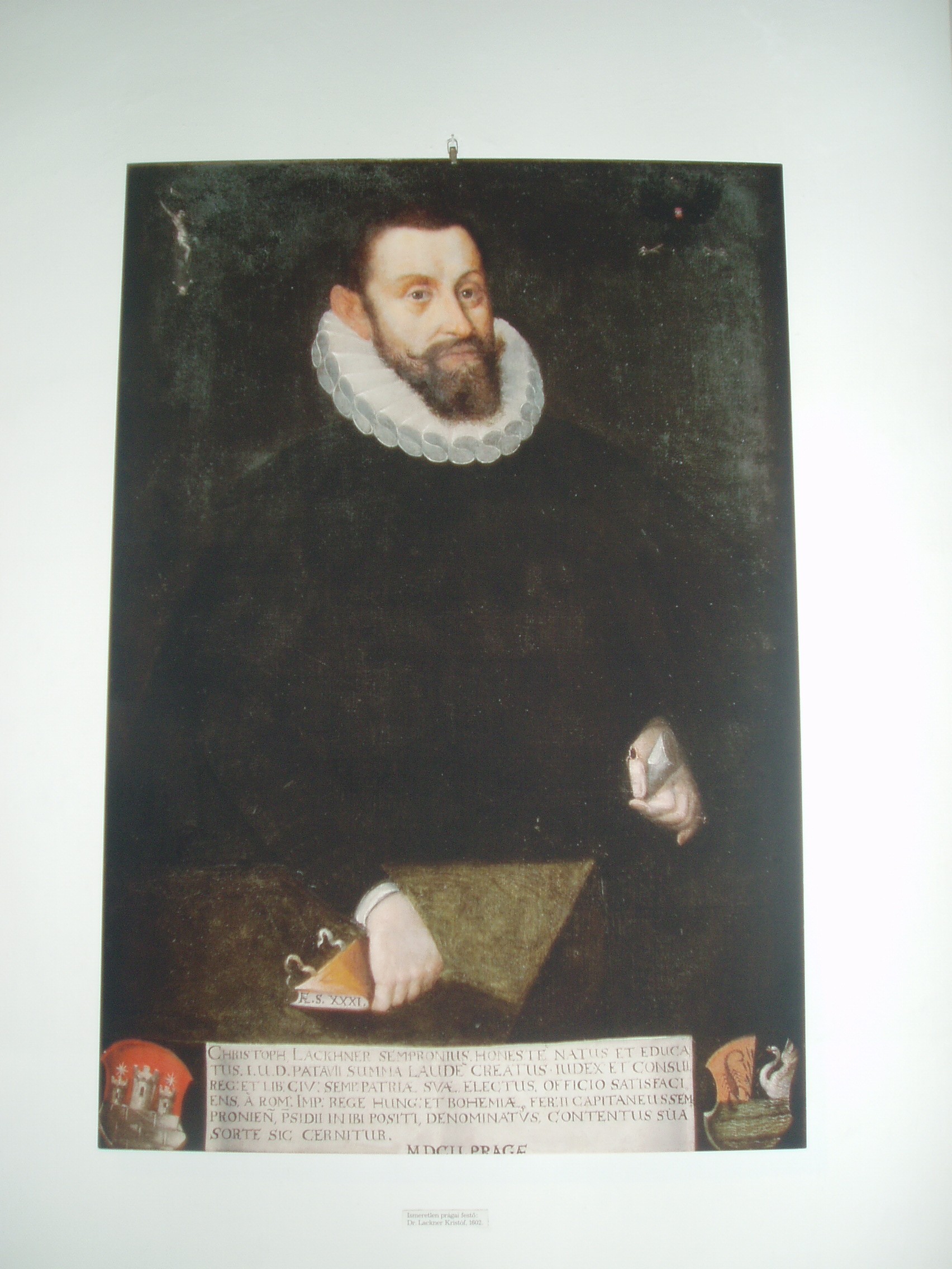 Nyilvános 1029 | 1460 | Fő tér 8. Storno-ház | Sopron városközpontjának egyik szép műemléke a középkori eredetű kétemeletes Storno–ház, amely mai formáját 1720 körül kapta. A történelmi múltú házban 1482-1483 telén hosszabb ideig tartózkodott Mátyás király, innét intézte bécsi hadjáratának ügyeit. Az eseményt a homlokzaton emléktábla örökíti meg. Az épület 1698-tól 1872-ig a Festetich család tulajdona volt. 1872-ben id. Storno Ferenc festőművész, restaurátor vette meg családi otthonnak, s itt helyezte el műgyűjteményét. A Storno–ház ma múzeum. Első emeletén a Soproni Múzeum várostörténeti kiállítása kapott helyet. A második emeleten a ház egykori lakói, id. és ifj. Storno Ferenc által gazdagon dekorált és berendezett helyiségek tekinthetők meg. A képen a Sopron legendás polgármesterét, Lackner Kristófot ábrázoló festmény látható. Az ismeretlen prágai festő alkotása 1602-ben készült. A kép 2008 júniusában készült. Felh.irod.: Czellár Katalin: Sopron. 3. jav. kiad. Bp. Panoráma, 2000 Askercz Éva: Storno–gyűjtemény. Bp. TKM 1987 /Tájak–Korok–Múzeumok Kiskönyvtára 276./ |