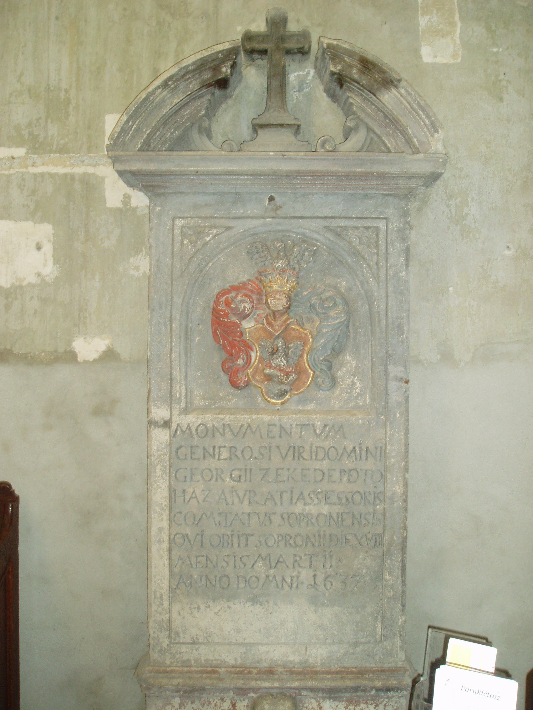Nyilvános 866 | 1240 | Sopron, Fő tér: Kecske-templom | A soproni Fő tér ékességét, a gótikus Kecske–templomot és a hozzá tartozó ferences kolostort a XIII. század második felében kezdték építeni. Tornya a XIV. század első negyedében készült el; mai alakja id. Storno Ferenc 1888–1894 között végzett helyreállításának eredménye. Szokatlan nevét a kapuzat felett látható faragott állatfiguráról kapta, amelyről kiderítették a kutatók, hogy az építtető Gaisel család címerállata volt. A képen látható kecske-domborművet Storno Ferenc faragta az eredeti alapján, amelyet most a Káptalanteremben lehet megtekinteni. Maga a templom faragott kőből épült, háromhajós, északi oldalán toronnyal díszített kora gótikus épület, berendezése a későbbi századokból származó barokk, illetve rokokó stílusú. Déli hajójának közepén áll egy XV. századból származó, márványból készült szószék. Ebbe ágyazták bele azt a fából faragott szószéket, amelyről állítólag Kapisztrán János prédikált a templom előtt a török ellen. A templom többször volt színhelye országos jelentőségű ünnepségeknek, reprezentációs alkalmaknak: 1553 és 1681 között öt alkalommal falai között tartották az országgyűlési ünnepeket; 1625-ben királyt (III. Ferdinánd), 1622-ben és 1681-ben királynét koronáztak benne. 1787-ben feloszlatták a ferences rendet, s az épületegyüttest később a bencések kapták meg. A képen egy 1634-ből származó sírkő látható. A fénykép 2008 júniusában készült. Felh. irod.: Czellár Katalin: Sopron. 3. jav. kiad. Bp. Panoráma, 2000 Albert Tibor: Sopron–Vas vármegyei útikönyv. Magyar múlt — osztrák–magyar jelen. Kőszeg, Városkapu Kiadó, 2005 |