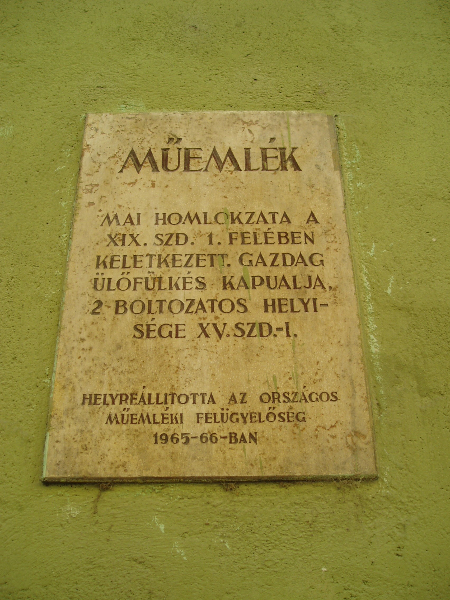 Nyilvános 1094 | 1385 | Sopron, Kolostor utca 7. | A középkori eredetű, akkor lakótornyos házat később klasszicista stílusban átalakították, de több helyen megőrződtek gótikus részletek: ablakok, falfestés, gótikus ülőfülkék a kapualjban, illetve két, keresztboltozattal fedett helyiség. A fénykép 2008 júniusában készült. Felh. irod.: Czellár Katalin: Sopron. 3. jav. kiad. Bp. Panoráma, 2000 |