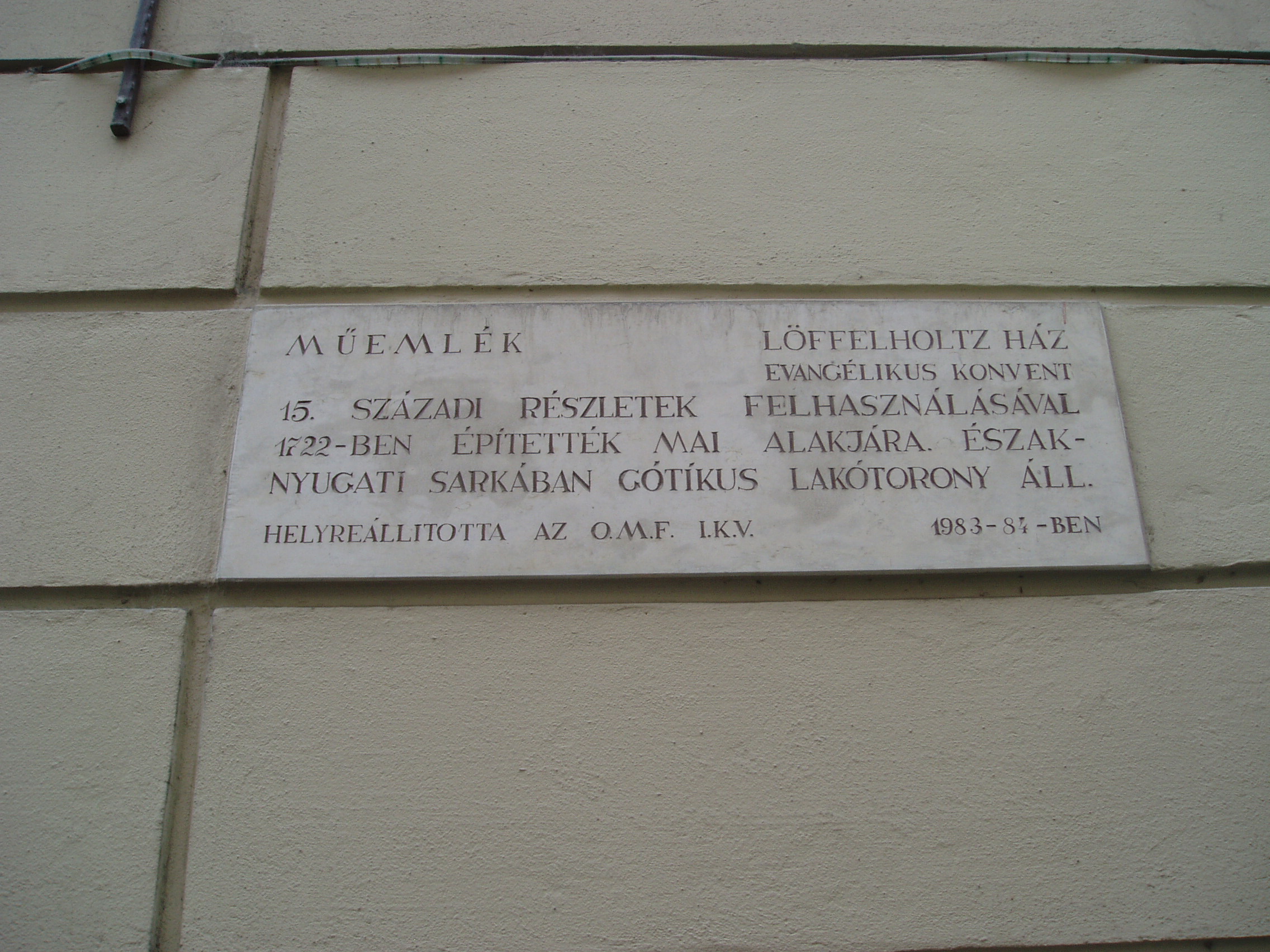 Nyilvános 1063 | 1429 | Sopron, Szent György utca 14. Evangélikus konventház. | A középkori eredetű egyemeletes barokk lakóház jelenlegi külsejét a XVIII. század első negyedének vége felé kapta. Ez volt a soproni evangélikus gyülekezet ún. Gemein–Haus épülete, azaz a konventház. Eredetileg a szomszéd házat (lásd: Sopron, Szent György utca 12.) is birtokló Eggenberg hercegné tulajdona volt, aki halálakor az evangélikus egyházra hagyta, amely később azt Löffelholtz bárónénak adta el. A báróné, aki Jókai Mór regényében, A lőcsei fehér asszonyban játszik szerepet, az ingatlant ismét az evangélikus konventre hagyományozta. Udvarában gótikus torony áll. Ebben a házban lakott Wohlmuth János (1643–1724) zeneszerző és orgonaművész. Valószínűleg ő volt a zenetanára Stark Jánosnak, egy helybeli fogadós (lásd: Sopron, Várkerület 55.) fiának. A feltételezések szerint a ma Stark–féle virginálkönyvként számon tartott kézirat táncait és egyéb kisebb darabjait Wohlmuth kottázta le a Stark–fiú számára, mintegy hangszeriskolaként. A katolikus főúr, Esterházy Pál nádor — maga is kiváló muzsikus, a Harmonia Caelestis szerzője — is rá, az evangélikus orgonistára bízta fiai hangszeres tanítását. A kép 2003-ban készült. Felh. irod.: Czellár Katalin: Sopron. 3. jav. kiad. Bp. Panoráma, 2000 Bárdos Kornél: Sopron zenéje a 16–18. században. Bp. Akadémiai Kiadó, 1984 Payr Sándor: Wohlmuth János. = Sopronvármegye, 1929. I–II |