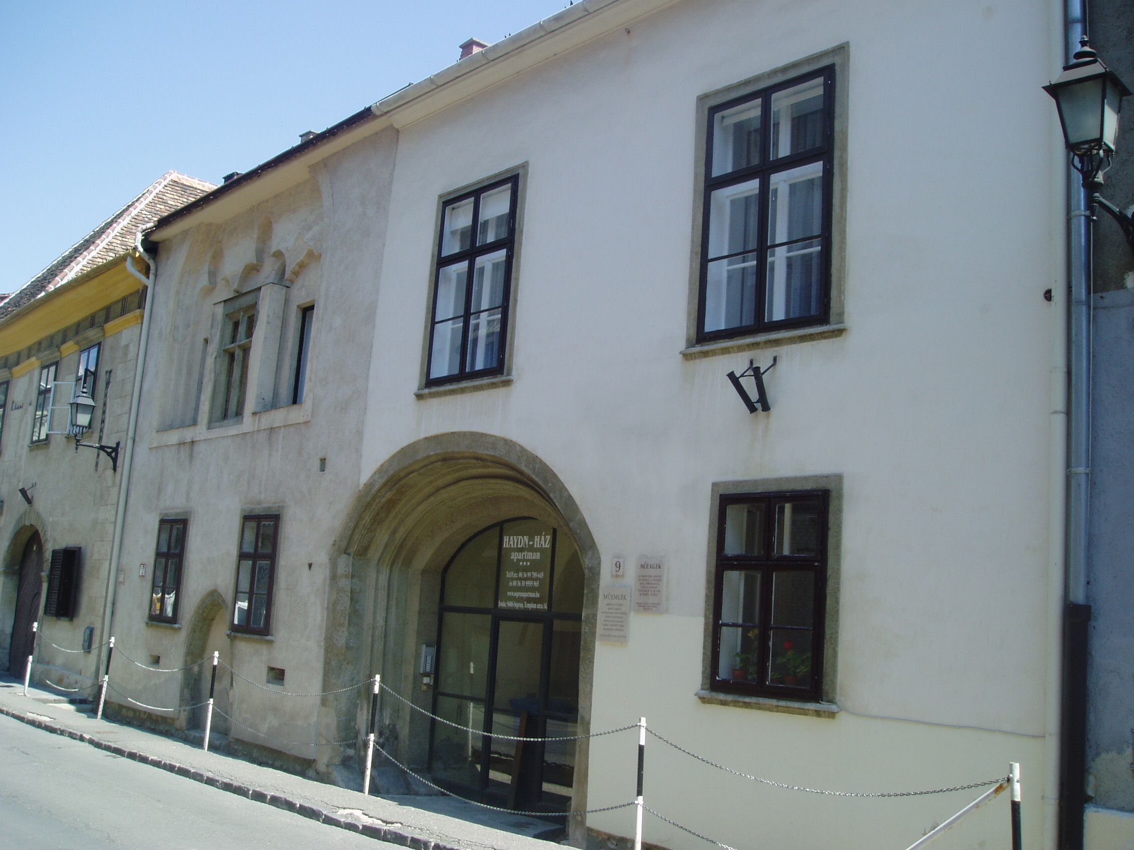 Nyilvános 1022 | 1462 | Sopron, Templom utca 9. | Az egyemeletes lakóház eredetileg a XIV. században épült, díszes kapuja a XVIII. században készült. A későbbiekben többször átalakított épület 1734 és 1782 között több magyar nemesi család birtokában volt, később Bezzegh János soproni tanácsos vásárolta meg. A kép 2008 júniusában készült. Felh. irod.: Czellár Katalin: Sopron. 3. jav. kiad. Bp. Panoráma, 2000 |