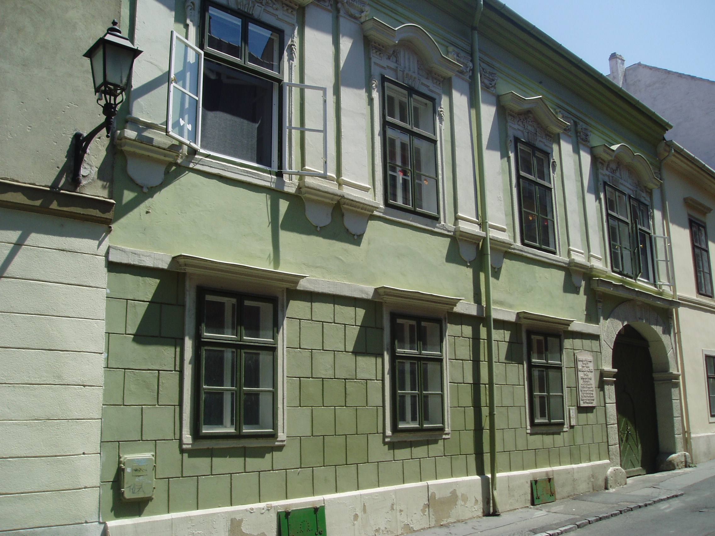 Nyilvános 1041 | 1527 | Sopron, Templom utca 17. | A Templom utca 12. számú épülethez hasonlóan ez a ház is evangélikus paplak volt. A barokk lakóház a XVII. században épült, mai alakját az 1710-es években kapta. Tulajdonosa volt 1738-ban Lőw Frigyes neves botanikus és orvos, valamint 1776-tól Örtl Károly, Sopron város levéltárának első rendszerezője. Az Örtl család ajándékozta 1831-ben a soproni evangélikus egyházközségnek. 1846 és 1884 között itt lakott Kolbenheyer Mór lelkész, költő, aki magyar költők műveit - így például Arany Toldi-trilógiáját - fordította németre. 1848-ban gyújtó hangú beszédben állt ki a szólásszabadságért s tagja lett a Batthyány miniszterelnök rendeletére megalakult soproni "Bizottmányi Választmány"-nak. Az osztrákok letartóztatták s a szabadságharc idején hónapokig bebörtönözve tartották. A kép 2008 júniusában készült. Felh. irod.: Czellár Katalin: Sopron. 3. jav. kiad. Bp. Panoráma, 2000 Sarkady Sándor: A soproni nemzetőrség 1848-ban. Sopron, Edutech, 1998 |