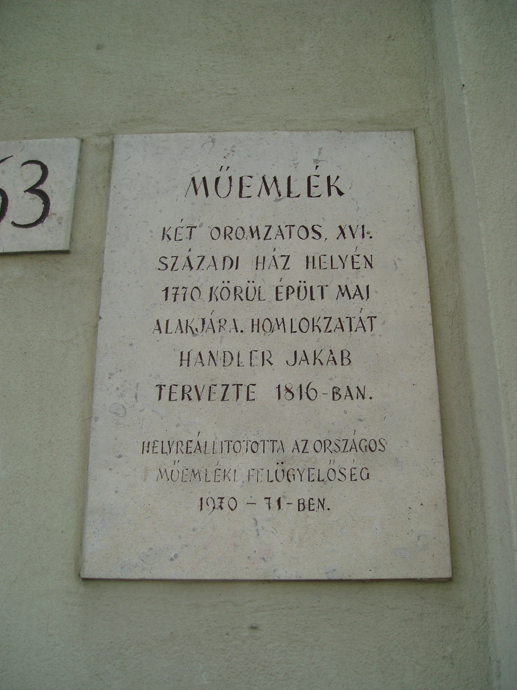 Nyilvános 1043 | 1426 | Sopron, Várkerület 63. | 1770 körül épült két XVI. századi ház helyére, a későbbiekben többször átalakították. Ebben a házban halt meg 1836-ban Dukai Takács Judit költőnő (1795-1836) tüdővészben. Sikerének titka elsősorban abban rejlett, hogy szinte megtestesítette a polgárosult hazai nőideált: több nyelven olvasott, zenélt, valamint járatos volt a poétikai és esztétikai tudományokban is. Népszerűségében közrejátszott szépsége, derűs és közvetlen egyénisége. A fénykép 2008 júniusában készült. Felh. irod.: Czellár Katalin: Sopron. 3. jav. kiad. Bp. Panoráma, 2000 |
