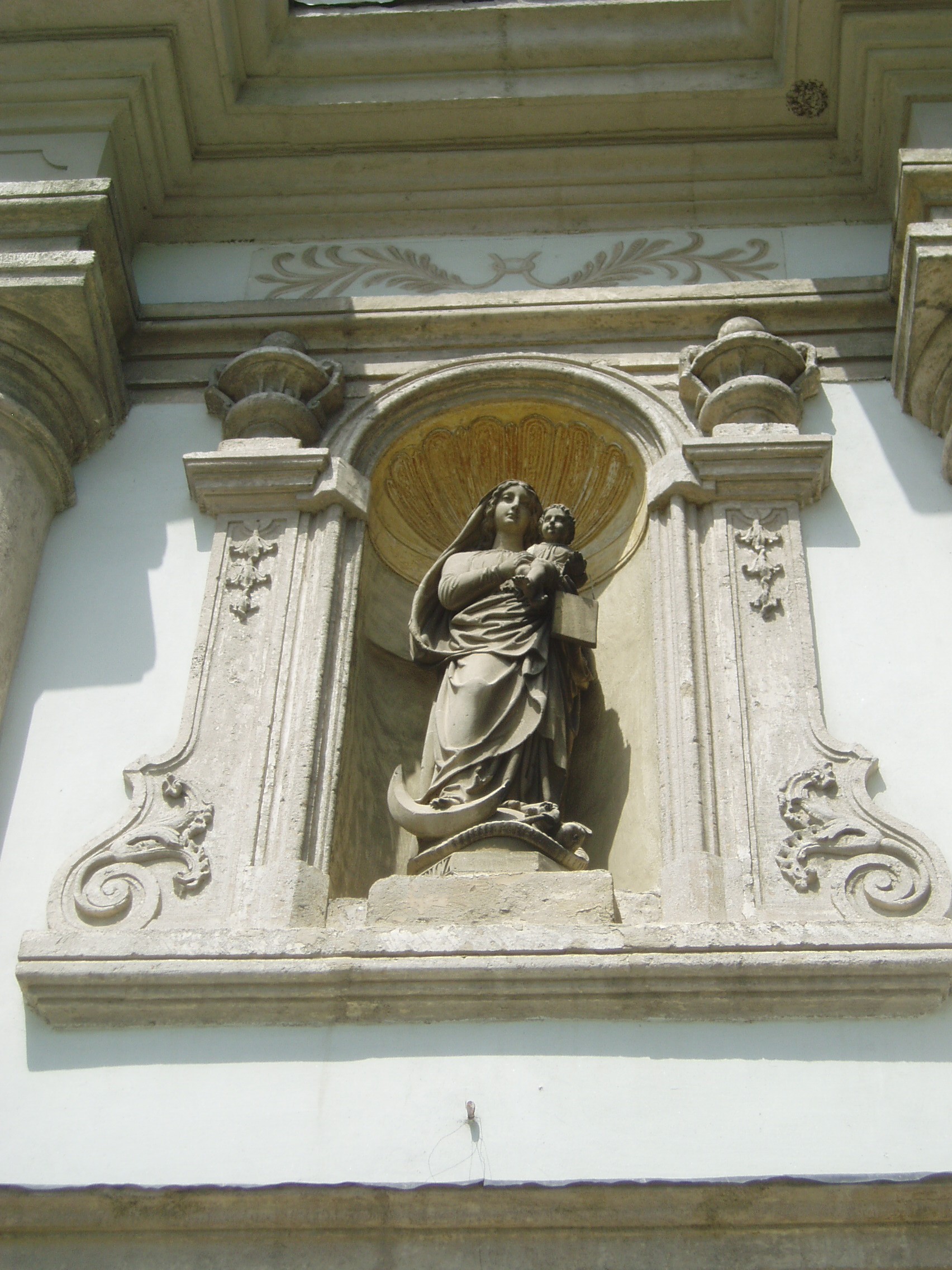 Nyilvános 1113 | 1744 | Sopronbánfalva: Kolostorhegy út: Karmelita templom és kolostor | Sopronbánfalva fölött a Sopronból Brennbergbányára vezető út déli oldán magas domb emelkedik. A dombot uraló gótikus eredetű, első formájában a XV. század végén épült templom és a hozzá csatlakozó barokk kolostorszárnyak eredetileg pálos szerzetesek, majd karmelita apácák otthona volt. Az épületegyüttest a település központjával a meredek domboldalban egyenesen húzódó díszes lépcső köti össze, amelyet karmelita-, vagy pálos lépcsőként ismer a köztudat. A lépcső hét lépcsőkarból és hét pihenőből áll. A pihenőkön, a baluszteres mellvéden jobbról-balról egy-egy szent kőszobra áll. A kép 2008 júniusában készült. Felh. irod.: Czellár Katalin: Sopron. 3. jav. kiad. Bp. Panoráma, 2000 |