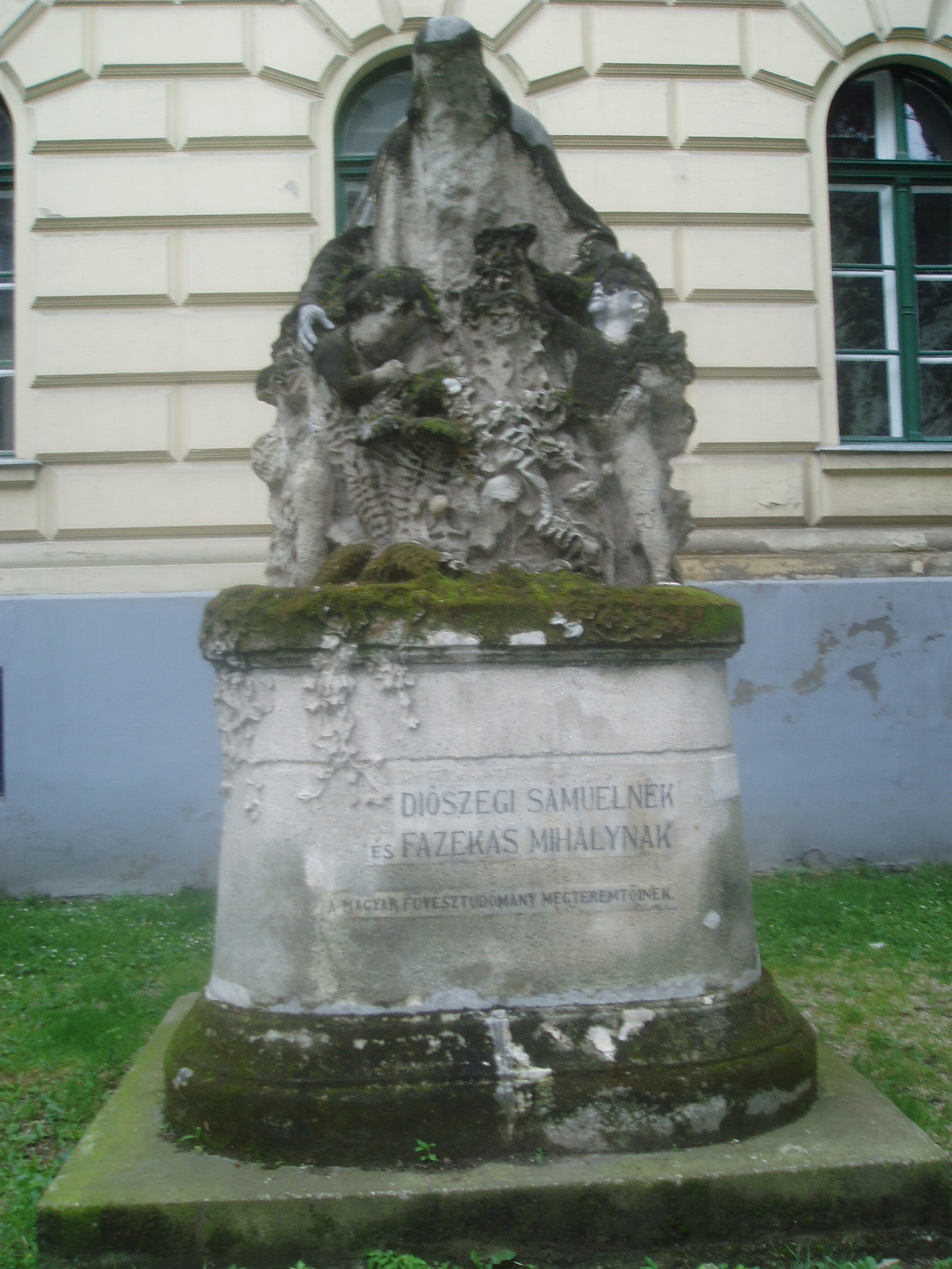 Nyilvános 1190 | 2496 | Debrecen, Perényi utca: Füvészkert szobor | A Perényi utcán álló Füvészkert-szobor voltaképpen Diószegi Sámuel és Fazekas Mihály (lásd még: Debrecen, Piac u. 68.) emlékműve. A szoborkompozíció, mely Somogyi Sándor debreceni szobrász alkotása, nem személyükben ábrázolja a két kiváló botanikust. A romantikus szimbolika szerint alkotott emlékmű fő alakja az áldást osztó Természet egy idős ember képében. Két gyermeket ölel magához, akik a világ titkain ámuló és az azt kutató emberiség kettős arcát jelképezi. Az emlékművet 1907-ben avatták fel, az első, Linné rendszere alapján írt magyar nyelvű Füvészkönyv megjelenésének 200. évfordulója alkalmából. Fazekas Mihály és Diószegi Sámuel tevékenységének köszönhetően készült el Debrecenben az első füvészkert, amelyet 1807-ben létesítettek a mai Déri Múzeum helyén. Emlékét ma már csak a Füvészkert utca őrzi. Az új füvészkertet a Nagyerdő területén hozták létre, ott is áll egy Diószegi-Fazekas emlékmű, amely már a két tudós valóságos alakját ábrázolja. Felh. irod.: Kovács Gergelyné: Debrecen. Bp. Panoráma, 1981 www.debrecen.hu |