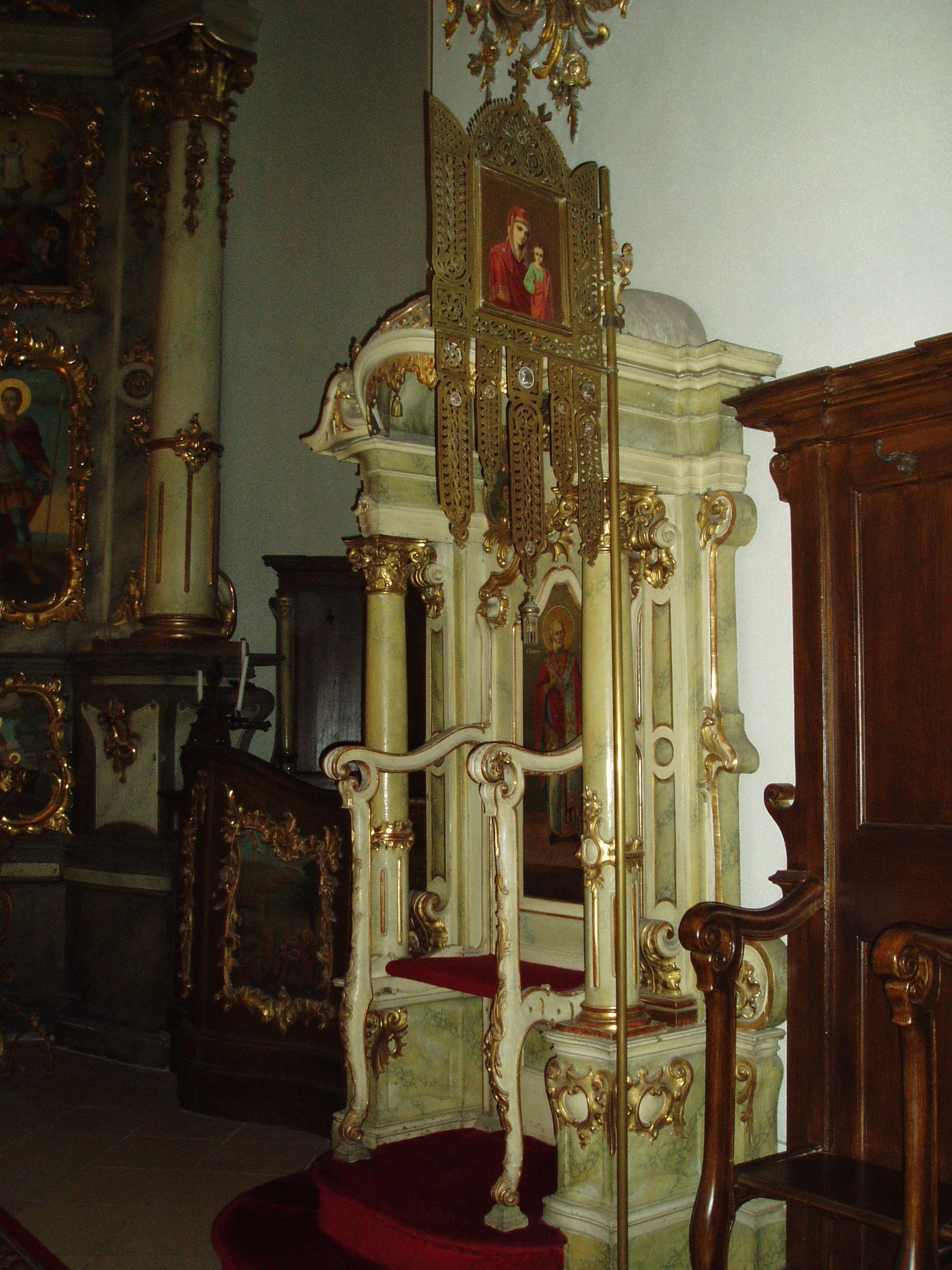 Nyilvános 1127 | 1777 | Szentendre, Pátriárka utca: Beográda-templom | A görögkeleti (ortodox) püspöki székesegyház, a Beográda vagy Belgrád-templom az ortodox egyházi élet központja. Helyén egykoron középkori templom állt, majd a XVII. században az ottani politikai helyzet miatt Belgrádból idetelepülők kőből építettek itt templomot. A mai, barokk stílusú katedrális 1756-1764 között készült. A körülzárt kertbe - amelyben a templom és mellette a püspöki palota áll - finom mívű kovácsoltvas díszkapun át juthatunk be. A templom főbejárata mellett áll az a kis épület, melyben a szájhagyomány szerint III. Arsenije pátriárka lakott, ezért azt ma is pátriárkai épületnek nevezik. A székesegyház főhomlokzatában kiemelkedő szerepet kap a 48 méter magas harangtorony; ez Szentendre legmagasabb templomtornya. A templombelső nagy művészettörténeti értéke a nagyméretű ikonosztáz (Ösztovics Vazul szerémségi festőművész készítette 1777/81-ben), az aranyozott, hársfából faragott szószék, valamint a baldachinos püspöki trón. A fénykép 2005 szeptemberében készült. Felh. irod.: Szentendre. Szerk. Sándyné Wolf Katalin. Bp. Panoráma, 1985 www.templom.hu www.vendegvaro.hu |