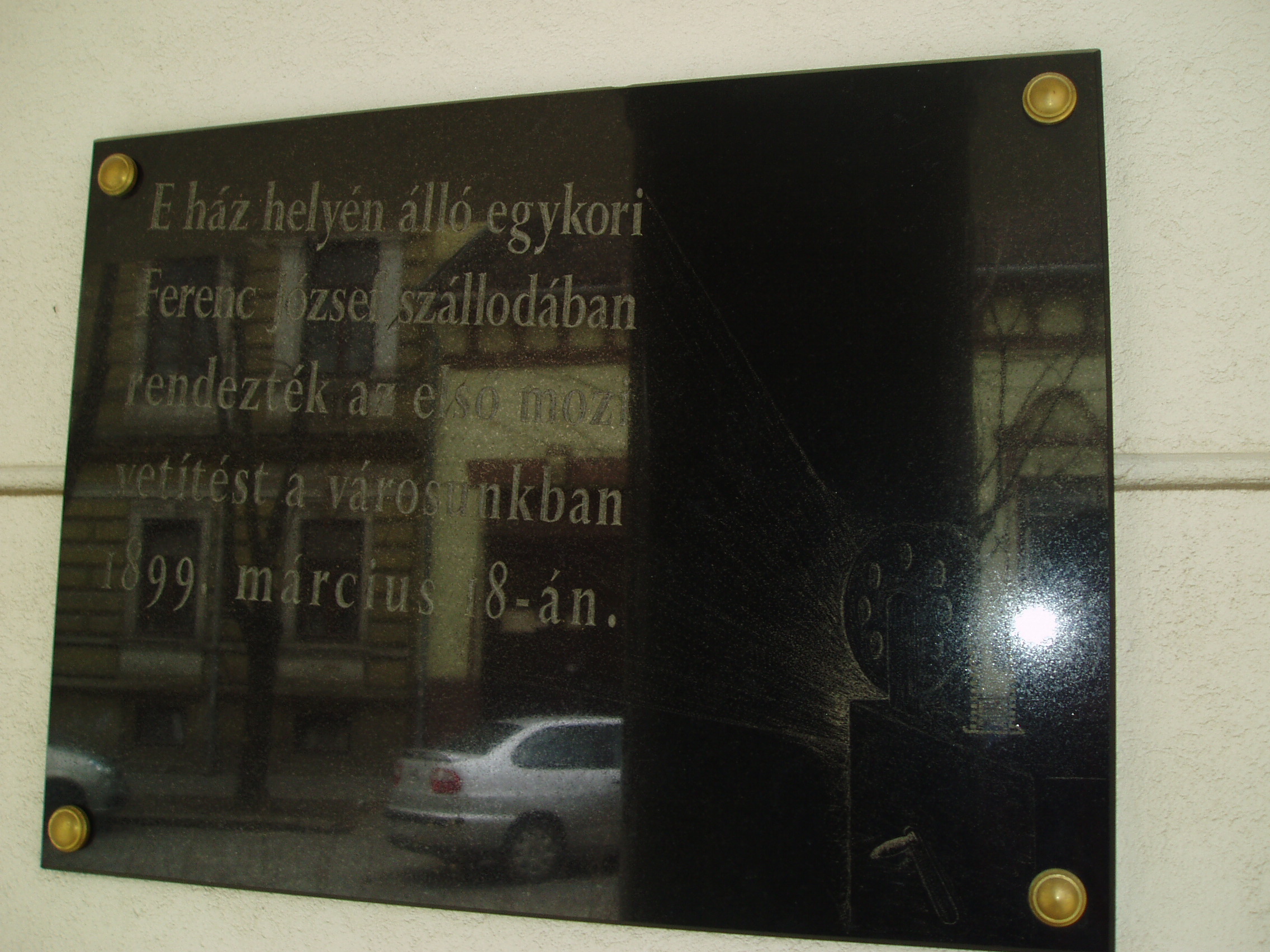 Nyilvános 1207 | 1748 | Kaposvár, Irányi utca 10. | Mint az épületen elhelyezett emléktáblán is olvasható, korábban ezen a helyen a Ferenc Józsefről elnevezett szálloda állott. Itt rendezték Kaposváron az első mozielőadást 1899. március 8-án. A fénykép 2006 márciusában készült. |