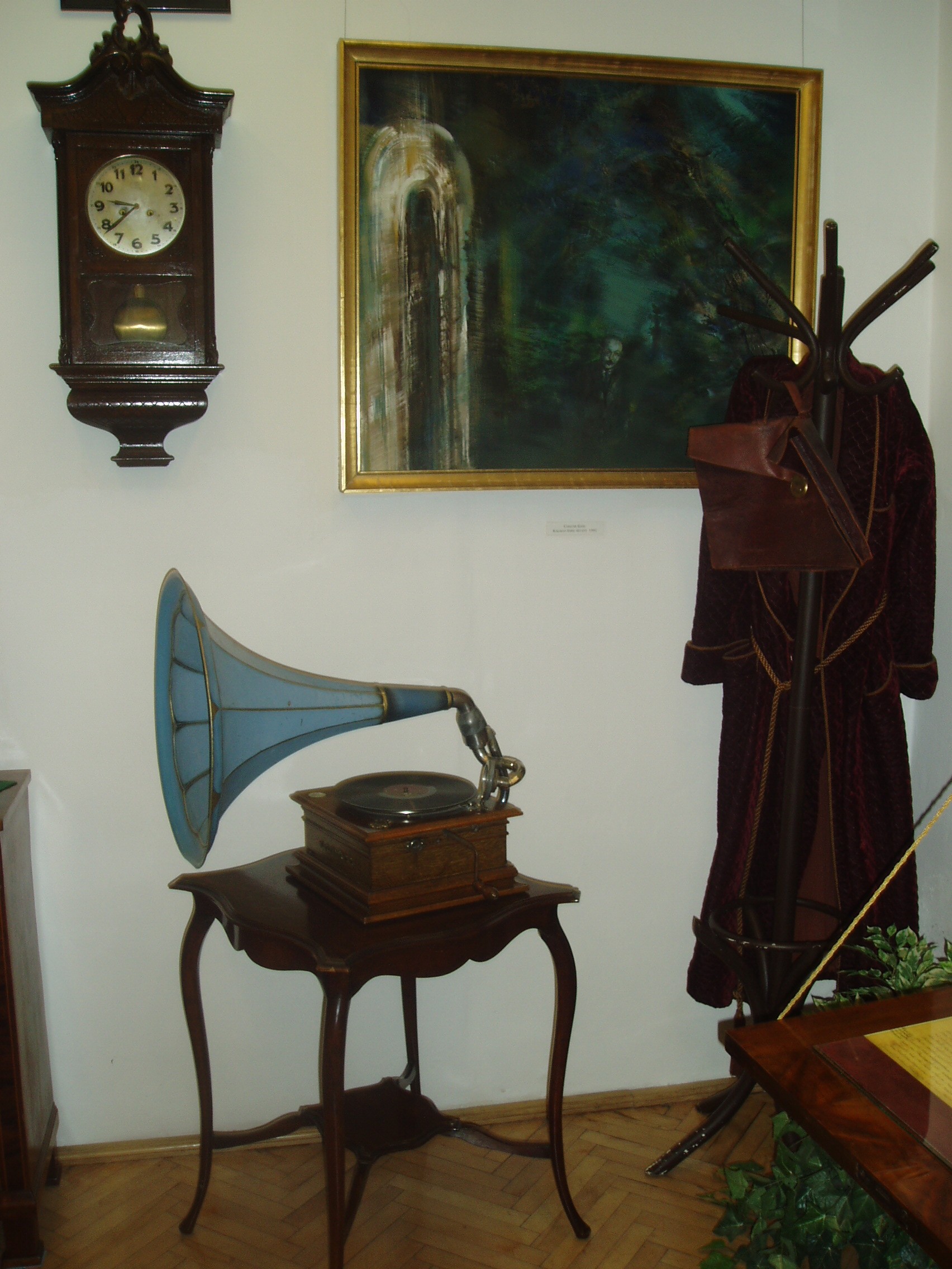 Nyilvános 1214 | 2172 | Siófok, Kálmán Imre sétány 5. | Ebben a vasútállomáshoz közeli házban született 1882-ben a magyar operett egyik legjelentősebb zeneszerzője, Kálmán Imre. Szülőházában — amelyet először 1955-ben jelöltek meg emléktáblával — 1970-ben özvegye, Kálmán Vera jelenlétében emlékszobát avattak. A mostani, gazdagabb anyagú emlékmúzeumot a zeneszerző születésének 105. évfordulója alkalmából, 1987. október 22-én nyitották meg. Jelenleg az emlékmúzeum a szülőház földszinti termeiben található, az emeleten kortárs képzőművészeti időszaki kiállításokat szoktak rendezni. Kálmán Imre számos személyes tárgyát állították itt ki enteriőr-szerűen, köztük bordó háziköntösét és kedves "daloló gép"-ét, amely mellett gyakran hallgatott zenét - talán éppen ebben a köntösben. A fénykép 2006 júliusában készült. Felh. irod.: Kálmán Imre Múzeum Siófok. Szerk. Koch József. Siófok, 2000 http://www.kalmanimre-muzeum.hu/ |