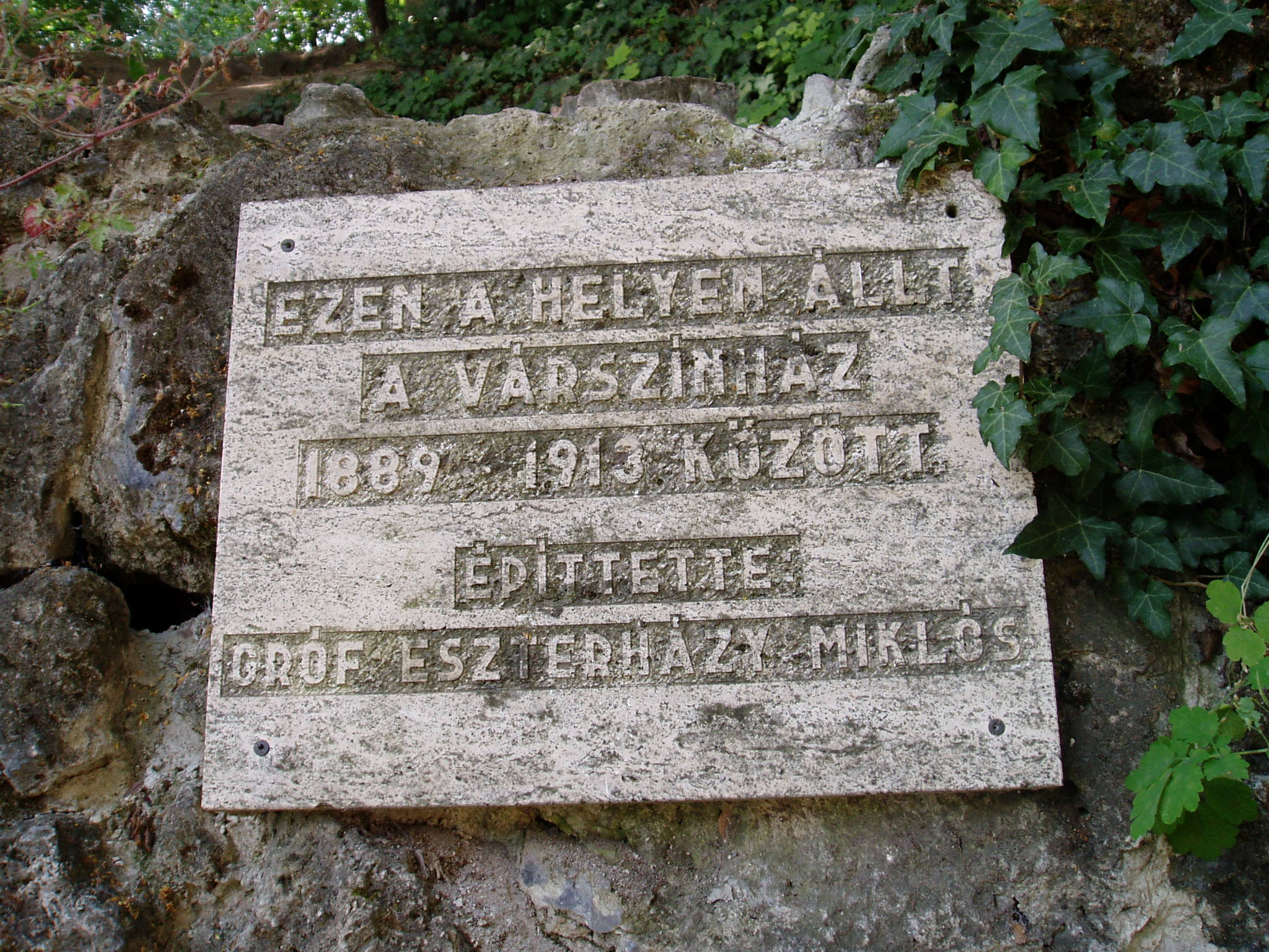 Nyilvános 1593 | 3513 | Tata, Kastély tér: a régi színház maradványai | A kastélyparkban, az Esterházy sétány nyugati oldalán, a támfal előtt három megmaradt oszlop és a falon emléktábla idézi az egykori Esterházy–kastélyszínházat. Esterházy Miklós József gróf (1839–1897) életét két nagy szenvedély kísérte: a lovassport és a művészetek iránti rajongás. Nagy vagyonából mindkét passziójára sokat költött. Tréningtelepet és versenypályát létesített, lóversenyeket rendezett. S hogy az összegyűlt főúri vendégeket kulturális élményekben is részesítse, 1888-ban létrehozta kastélyszínházát. A kis ékszerdoboz épületet a kor két neves színházépítője, Ferdinand Fellner és Hermann Helmer tervezte (az ő alkotásuk a budapesti Vígszínház is). A grófi Várszínház csak időszakosan, lóversenyszezonban játszott, méghozzá német nyelven. Műsorán kellemes korabeli vígjátékok, operettek, énekes játékok, olykor operarészletek szerepeltek. A gróf halála után megszűntek az előadások. A használaton kívüli épület állaga leromlott, s 1913-ban lebontották. Az itt felállított oszlopokon kívül az Öregvárban található Kuny Domokos Múzeumban néhány tárgyi emlék és kép idézi egykori életét. A fénykép 2005. júliusában készült. Felh. irod.: Polgárdy Géza: Tatatóváros és környéke kalauza. Az 1939-es kiadás reprintje. Tata, Móricz Zsigmond Városi Könyvtár, 1998 Staud Géza: Magyar kastélyszínházak 3. kötet. Bp. Színháztudományi Intézet - Országos színháztörténeti Múzeum, 1964 |