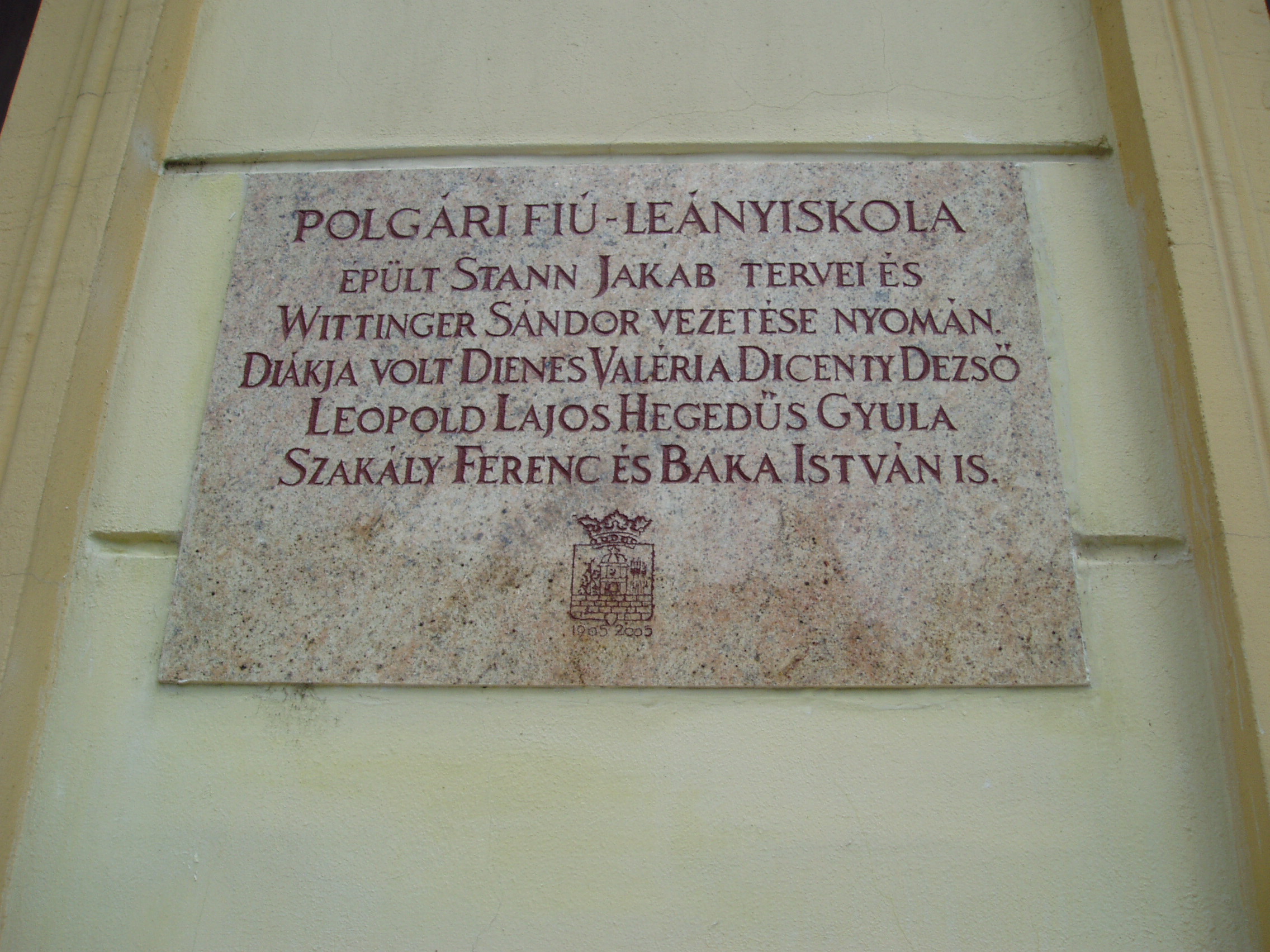 Nyilvános 1175 | 1873 | Szekszárd, Garay tér 9. | Az egykori polgári fiú- és leányiskola 1876-ban épült koraeklektikus stílusban Stann Jakab tervei szerint. Mint a homlokzatán elhelyezett emléktáblán is olvasható, több neves diák tanult itt, többek között Dienes Valéria filozófus, az orkesztika megalapítója (lásd még: Szekszárd, Babits M. u. 17.), Szakály Ferenc történész és Baka István író. A fénykép 2006 júliusában készült. Felh. irod.: http://www.szeki.hu/turista/kalauz/magyar/tu000063.htm |