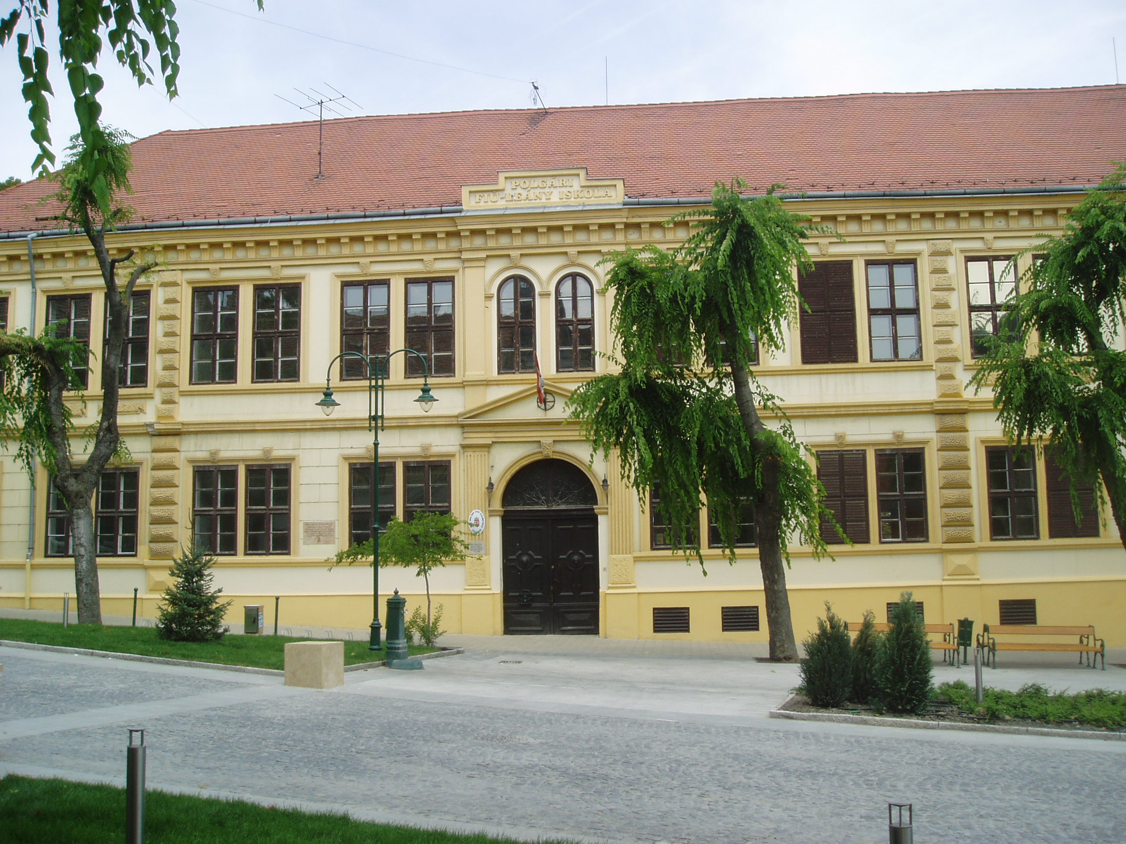 Nyilvános 1203 | 2126 | Szekszárd, Garay tér 9. | Az egykori polgári fiú- és leányiskola 1876-ban épült koraeklektikus stílusban Stann Jakab tervei szerint. Mint a homlokzatán elhelyezett emléktáblán is olvasható, több neves diák tanult itt, többek között Dienes Valéria filozófus, az orkesztika megalapítója (lásd még: Szekszárd, Babits M. u. 17.), Szakály Ferenc történész és Baka István író. A fénykép 2006 júliusában készült. Felh. irod.: http://www.szeki.hu/turista/kalauz/magyar/tu000063.htm |