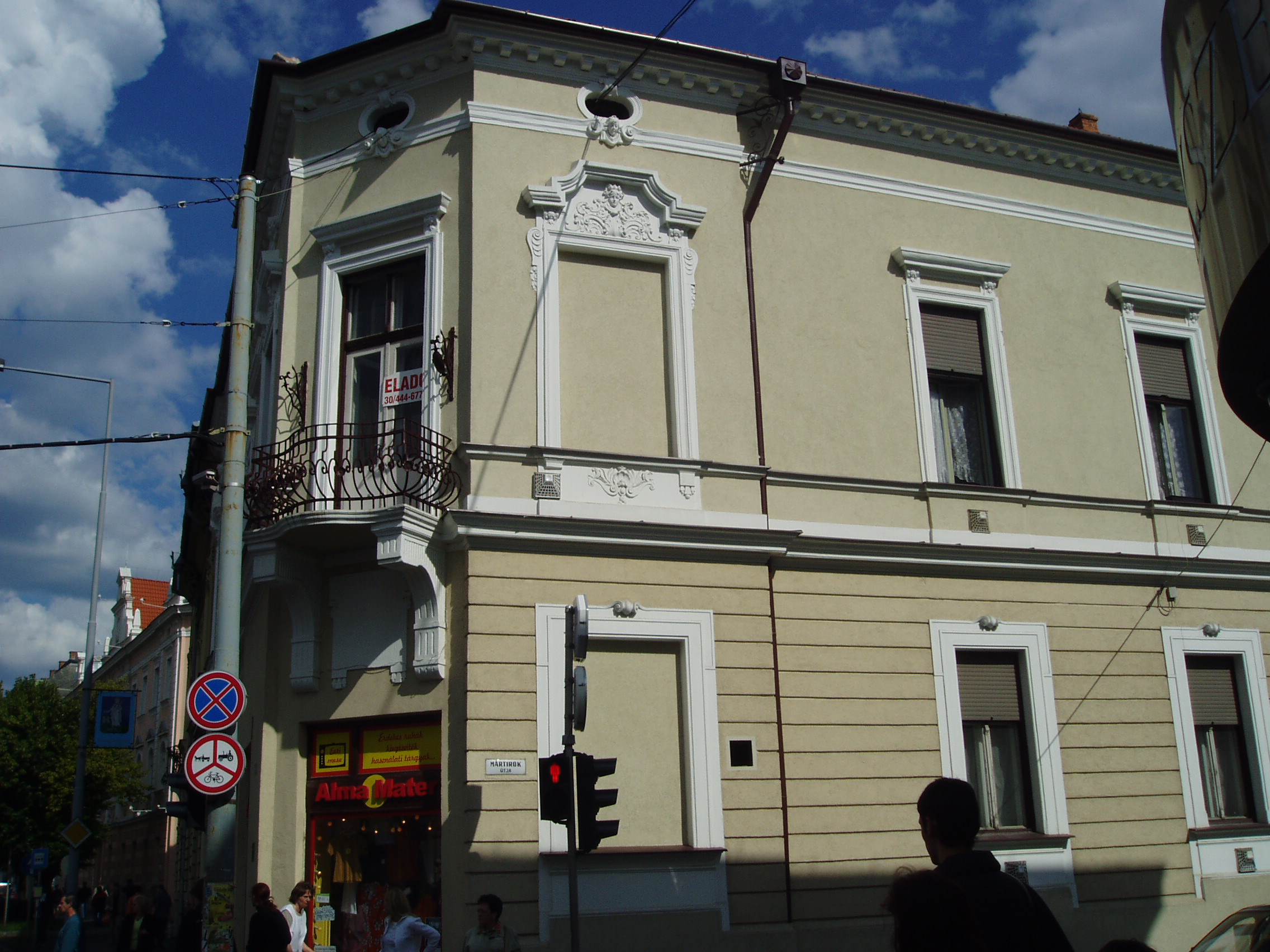 Nyilvános 1277 | 2779 | Zalaegerszeg, Mártírok útja 2. | Ebben a városközponti épületben született 1904. szeptember 6-án Keresztury Dezső (1904-1996) író, irodalomtörténész, kritikus, műfordító, miniszter, akadémikus. Édesapja ügyvéd volt, 1915-18 között a város polgármestere. Elemi iskolai tanulmányait és a gimnázium első négy osztályát szülővárosában végezte. Berlini évek után 1936-43-ban az Eötvös Kollégium tanára, közben 1937-43-ban a Pester Lloyd rovatvezetője volt. 1945-47-ben vallás- és közoktatásügyi miniszter, 1945-48-ban az Eötvös Kollégium igazgatója, 1948 után az MTA főkönyvtárnoka, 1950-71 között az Országos Széchenyi Könyvtár főosztályvezetője, 1985-től a Magyar Irodalomtörténeti Társaság elnöke, majd tiszteletbeli elnöke. 1973-tól az MTA levelező, 1982-től rendes tagja. A kortárs magyar irodalom sokoldalú művelője, a magyar irodalom- és művelődéstörténet elismert kutatójaként számos magyar és nemzetközi társaság tagja, kitüntetettje volt. 1968 után került újra szoros kapcsolatba szülővárosával, amelynek 1975-ben díszpolgára lett. 1993-ban megjelent "Emlékezéseim. Szülőföldjeim" című önéletrajzi kötete itt töltött gyermekkorának emlékeit is felidézi. Egykori iskoláját több alapítvánnyal is támogatta; édesapja szőlőhegyi hajlékát a városnak adományozta, ahol fokozatosan könyvtára is helyet kap, s alkotóházként működik. Szülőházán 1999-ben helyeztek el emléktáblát. A felvétel 2006 júniusában készült. Felh. irod.: Zalai életrajzi lexikon. = http://zalai.dfmk.hu/zalaiak |