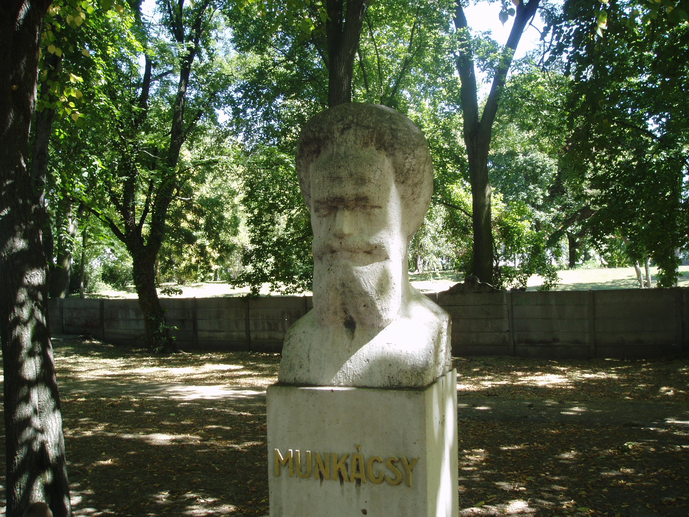 Nyilvános 1352 | 3070 | Gyula, Groza park, Szoborsétány: Munkácsy Mihály mellszobra | A Groza parkban, a vár felé vezető sétány mentén gyulai kötődésű neves személyiségek szobrait helyezték el. Munkácsy Mihály fehér mészkőből készült mellszobra Vasas Mihály alkotása. Munkácsy gyulai kapcsolatairól lásd: Gyula, Munkácsy utca 15. A fénykép 2007 júliusában készült. Felh. irod.: Czeglédy Imre: Gyula útikalauz. 2. jav., bőv. kiad. Gyula, 1995 |